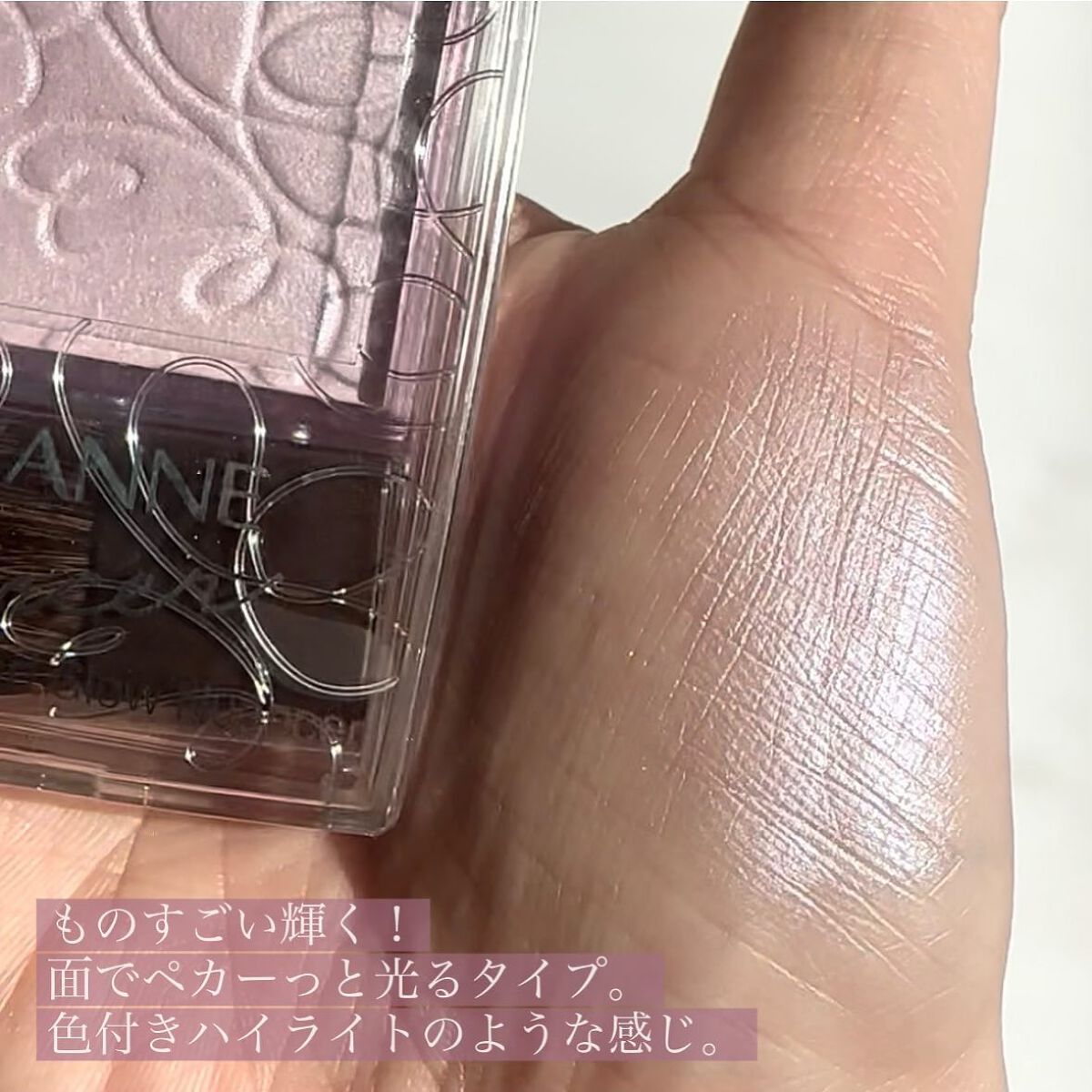 透明感のある仕上がりに🪄 白っぽいラベンダーカラーが可愛い🦄 肌の上に乗せると白みピンクカラーになるので程よい血色感があります👼🏻 しっとりした粉質で粉っぽさを感じません💎 パケが可愛くて他のカラーも集めたいです🌼