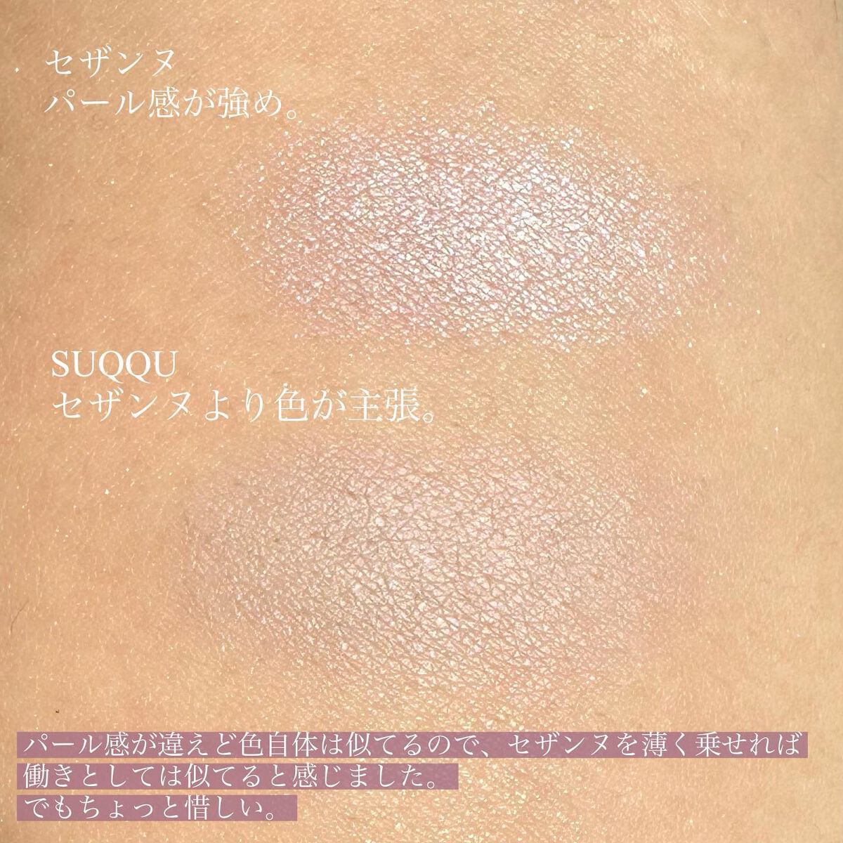 SUQQUの春コレクション、今年は節約したい私はスルー予定でしたが、お店で見たら可愛すぎてスルーできませんでした🫠もはや芸術品だし、色もとてつもなく可愛い🥹💕💕 この夢忘というカラーは、BAさんいわく既存の01番の右上と04番の左下を合わせたようなカラーだそう。01番も04番も気になってた私、尚更スルー出来るわけない😇 ハッピーオーラ満載の美ツヤチークが完成!ブレンドする割合によって青みにも黄みにも仕上げることが出来るので、いろんなテイストのメイクをしたい方も大満足💖