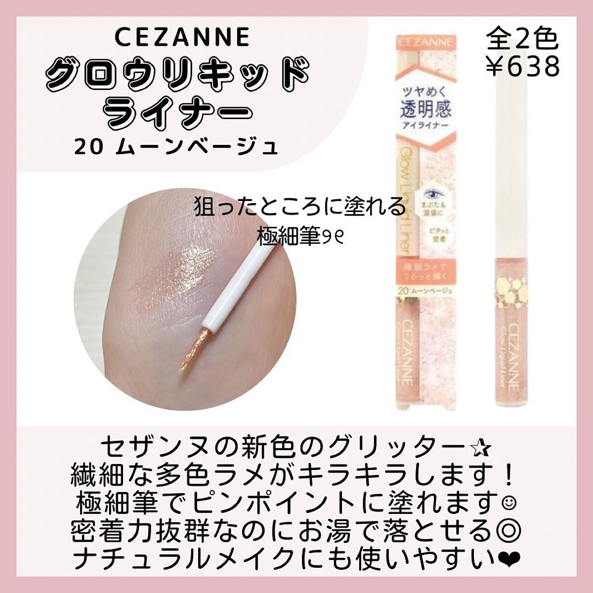 前回このリキッドアイシャドーのドライマティーニを購入して、かなり好きだったのでアイホール全体にも使えそうな無難カラーを入手♪ ポイントとしては乾く前ならぼかせるし乾いたら動かない。プチプラでコレはありがたい♪