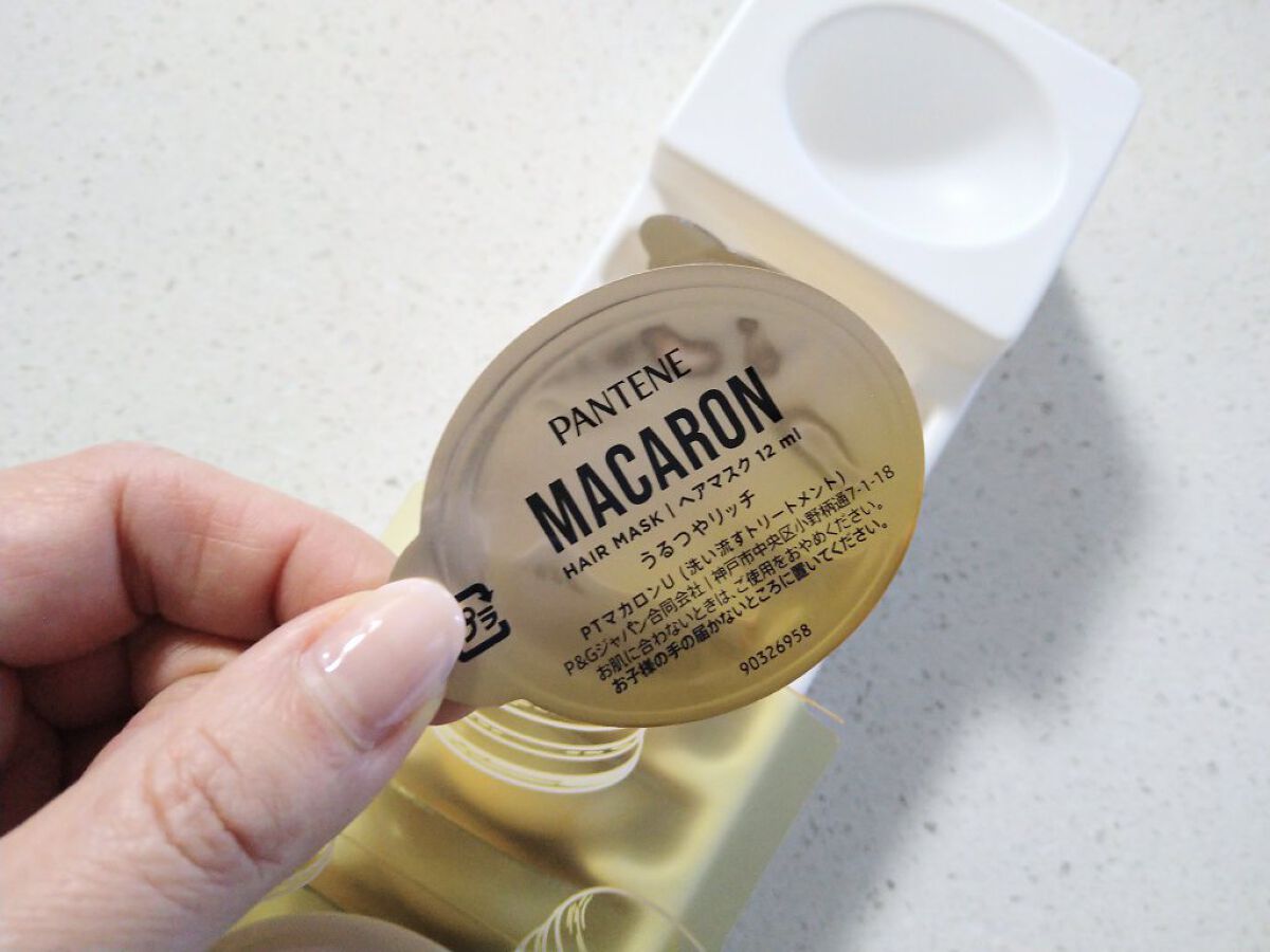 - 「パンテーン マカロン ヘアマスク」は、1粒に1回分の洗い流すトリートメントがたっぷり詰まった、使い切りタイプのヘアマスクです。 マカロンのようなカプセル型のユニークなパッケージの可愛さのみならず、個包装の使い切りタイプによる3つの特長で、たった1粒で、ずっと続く、うるおいつめく髪/色つや髪へ導きます。 1.1粒にたっぷりの洗い流すトリートメントをギュッと濃縮。すぐに感じる、もっとまとまる髪へ! 「パンテーン マカロン ヘアマスク」は、1粒にたっぷり12mLの洗い流すトリートメントが入っています。様々な髪の長さ、量の方でも髪の内側までしっかりと塗布することができ、効果を発揮します。 たっぷりの量を使用することで、髪のまとまり感がアップ。 2.いつでも開けたて、フレッシュな洗い流すトリートメント カプセル型のパッケージに入った個包装の1回使い切りなので、いつでも開けたてのフレッシュさ。 毎回、使う直前に手のひらで“メルティうるおいパール*”を混ぜ合わせて、1粒で、長時間続くうるおいつやめく髪へ。(うるつやリッチのみ) *黄色いカプセルのこと 3.個包装だから持ち運びOK。いつでもどこでも、うるつや髪・色つや髪に 日々のケアはもちろん、1粒ずつ持ち運ぶことが出来るので、ジムやサウナ、お泊り会、旅行・出張など、様々なシーンで使うことが出来ます。いつでも・どこでもうるつや髪/色つや髪に。