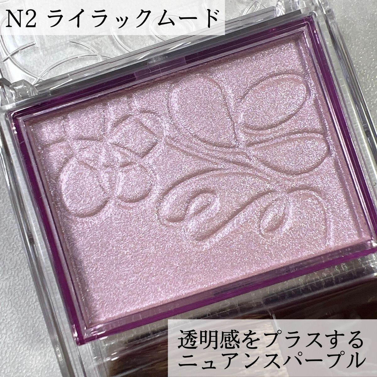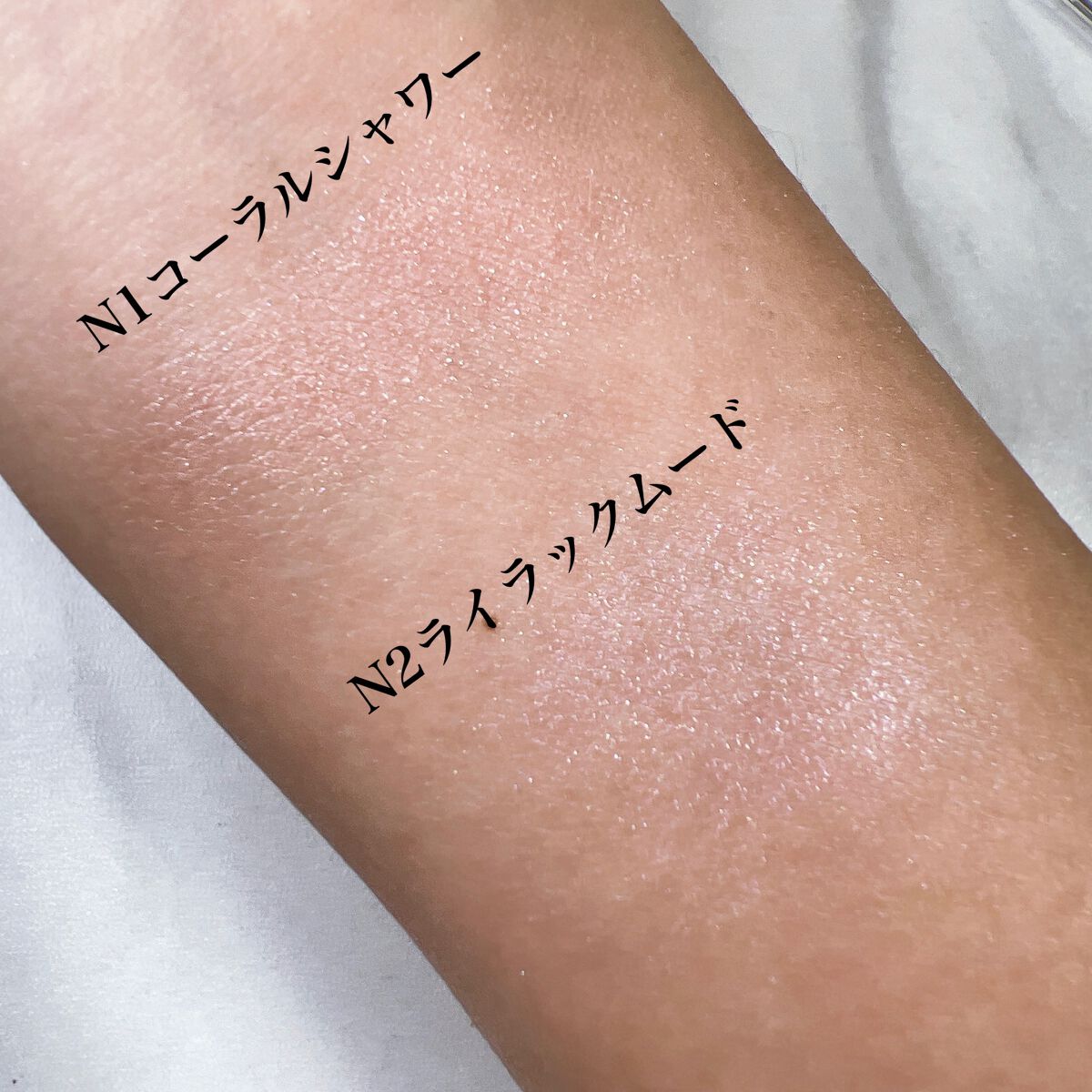 - <N1 コーラルシャワー> トリイソステアリン酸ポリグリセリル-2、トリエチルヘキサノイン、(フッ化/水酸化/酸化)/(Mg/K/ケイ素)、ヘキサ(ヒドロキシステアリン酸/ステアリン酸/ロジン酸)ジペンタエリスリチル、ミリスチン酸亜鉛、(HDI/トリメチロールヘキシルラクトン)クロスポリマー、ペンチレングリコール、ビスジグリセリルポリアシルアジペート-2、フェノキシエタノール、ハイドロゲンジメチコン、メチルパラベン、シリカ、トコフェロール、BG、水、ヒアルロン酸Na、カミツレ花エキス、ラベンダー花エキス、ローズマリー葉エキス、タルク、マイカ、酸化チタン、合成フルオロフロゴパイト、酸化鉄、酸化スズ、赤226、黄4、水酸化Al <N2 ライラックムード> トリイソステアリン酸ポリグリセリル-2、トリエチルヘキサノイン、(フッ化/水酸化/酸化)/(Mg/K/ケイ素)、ヘキサ(ヒドロキシステアリン酸/ステアリン酸/ロジン酸)ジペンタエリスリチル、ミリスチン酸亜鉛、(HDI/トリメチロールヘキシルラクトン)クロスポリマー、ペンチレングリコール、ビスジグリセリルポリアシルアジペート-2、フェノキシエタノール、ハイドロゲンジメチコン、メチルパラベン、シリカ、トコフェロール、BG、水、ヒアルロン酸Na、カミツレ花エキス、ラベンダー花エキス、ローズマリー葉エキス、タルク、合成フルオロフロゴパイト、酸化チタン、マイカ、グンジョウ、酸化スズ、酸化鉄、赤226、水酸化Al