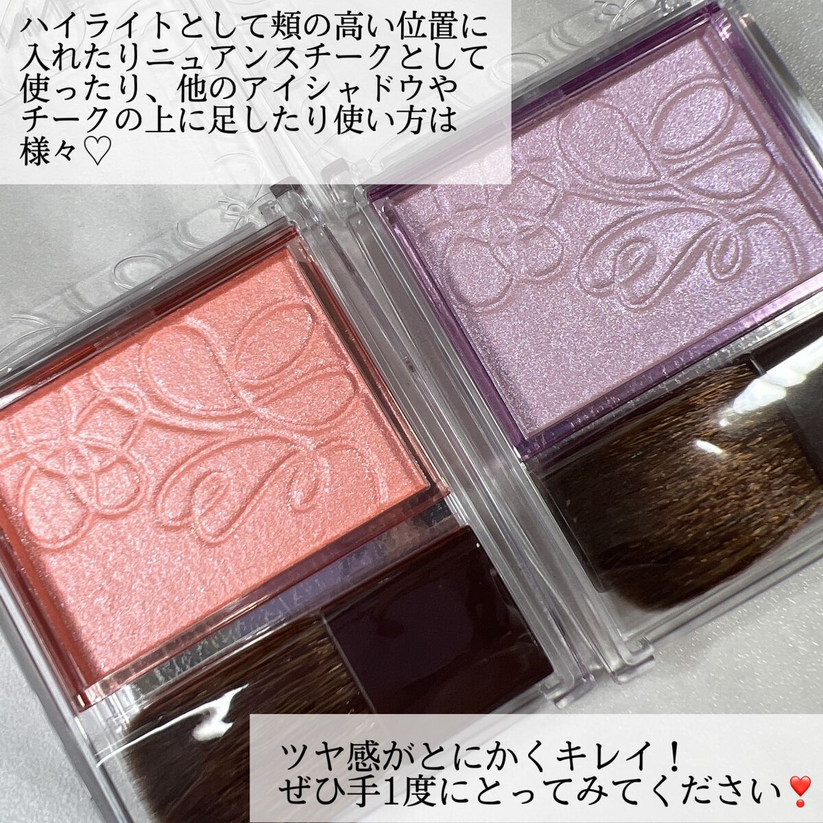 - ほのかな色みと光をレイヤードすることで、まるで光彩ヴェールをまとったようなニュアンスのある頬を演出するハイライト。 高輝度パール配合で面で濡れたような艶肌に。 単品でハイライトやチークとして艶をプラス。 お手持ちのチークやアイシャドウに重ねてニュアンスをチェンジ。 美容保湿成分(ヒアルロン酸Na、カミツレ花エキス、ラベンダー花エキス、ローズマリー葉エキス)配合。 肌あたりの良い毛量たっぷりのブラシ付。