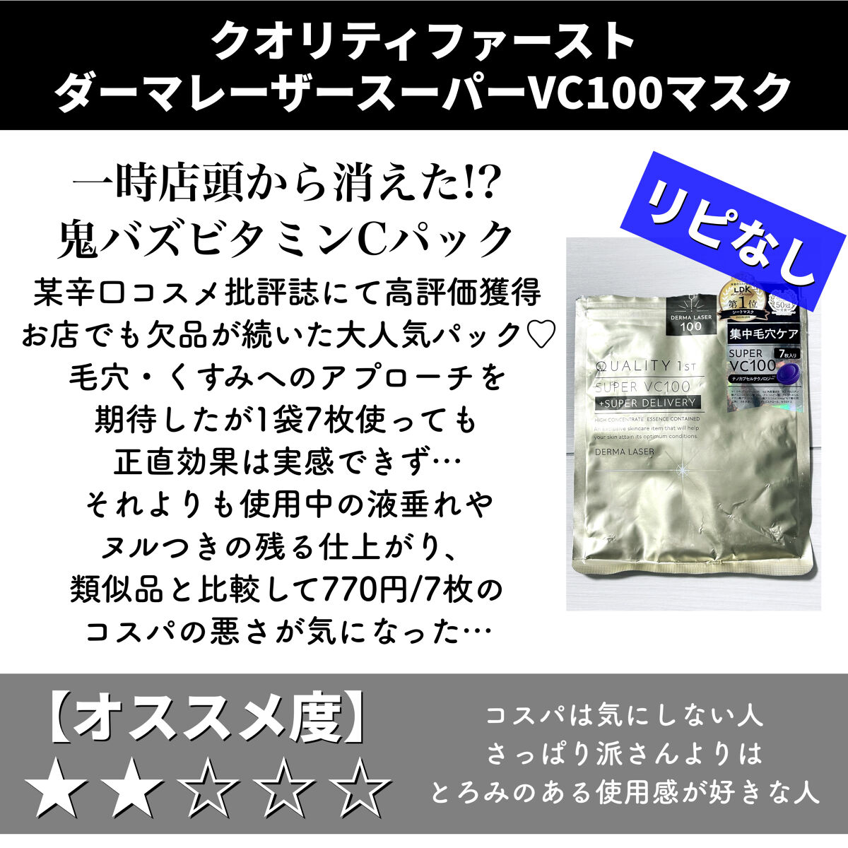 クオリティファースト ダーマレーザースーパーVC100マスク | 770円 |