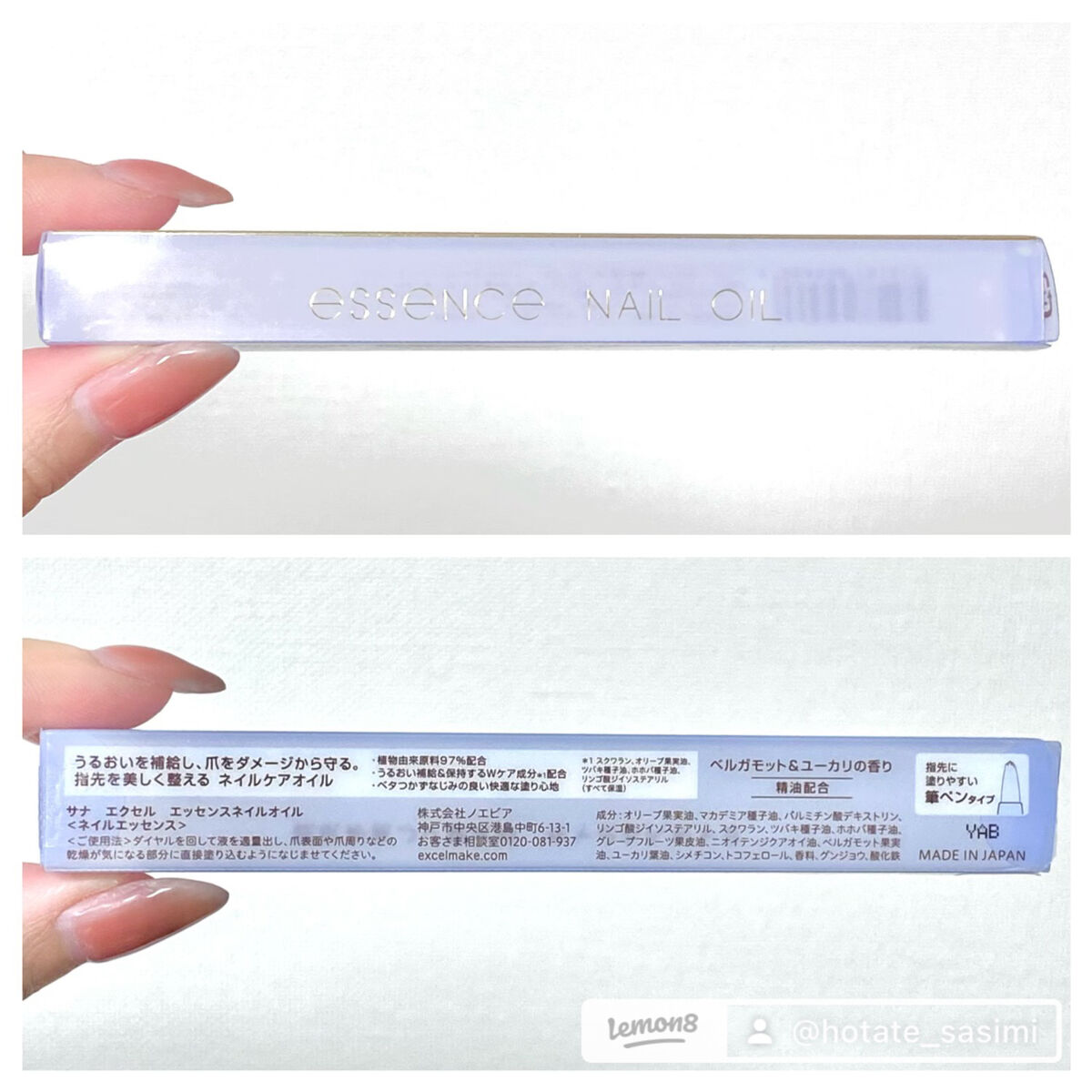 - うるおいを補給し、爪をダメージから守る 指先を美しく整える新ネイルケアオイル 植物由来原料97%配合のネイルケアオイルです。 指先に塗りやすい筆ペンタイプ。 持ち運びしやすいスマートなスリム容器で、いつでもどこでも、さっと簡単にケアができます。