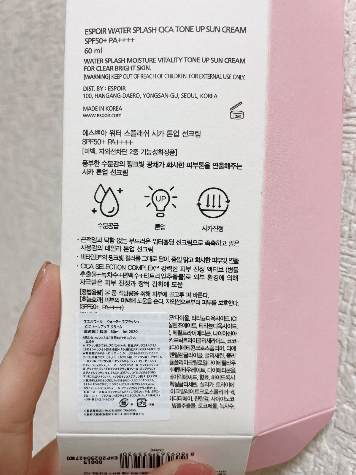 隙のない陶器肌は下地から✨ わたしがずっと使っている下地は、espoir WATER SPLASH CICATONE UP SunCREAM 60ml ウォータースプラッシュシリーズの中でツヤ肌とトーンアップを叶えてくれるのがこちらです💡 塗りたては「白塗り!?」ってなるぐらい白いのですが、超馴染んで綺麗な肌ができます。