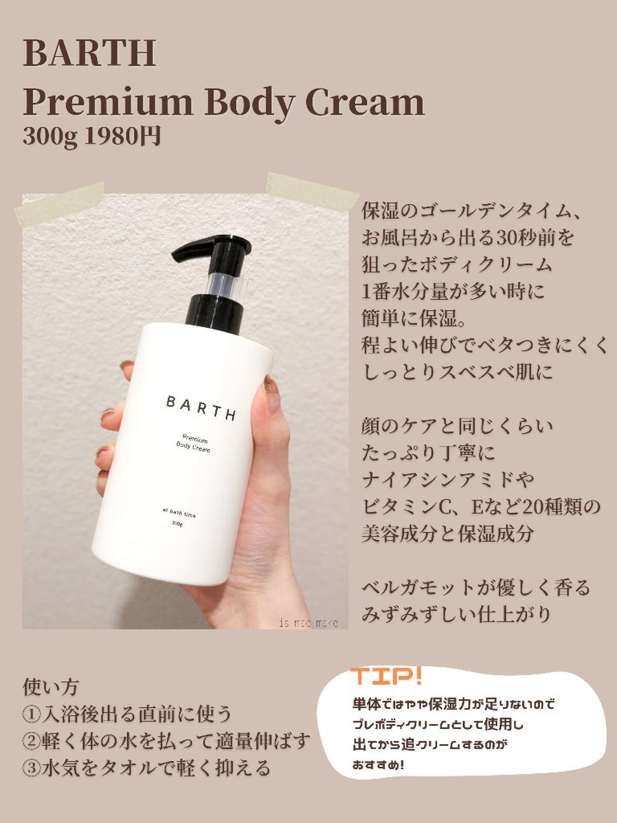 全身保湿🤍𓂂𓏸𓂂𓂂𓏸𓂂BARTHプレミアムボディクリームatbathtime𓏸𓂂𓏸𓏸𓂂𓏸\大人気な入浴剤でお馴染みのブランド/入浴剤は知ってる人も多いと思うけどボディクリームもあるの!ホイップ見たいな軽いクリームだけどしっかり保湿されてベタ...