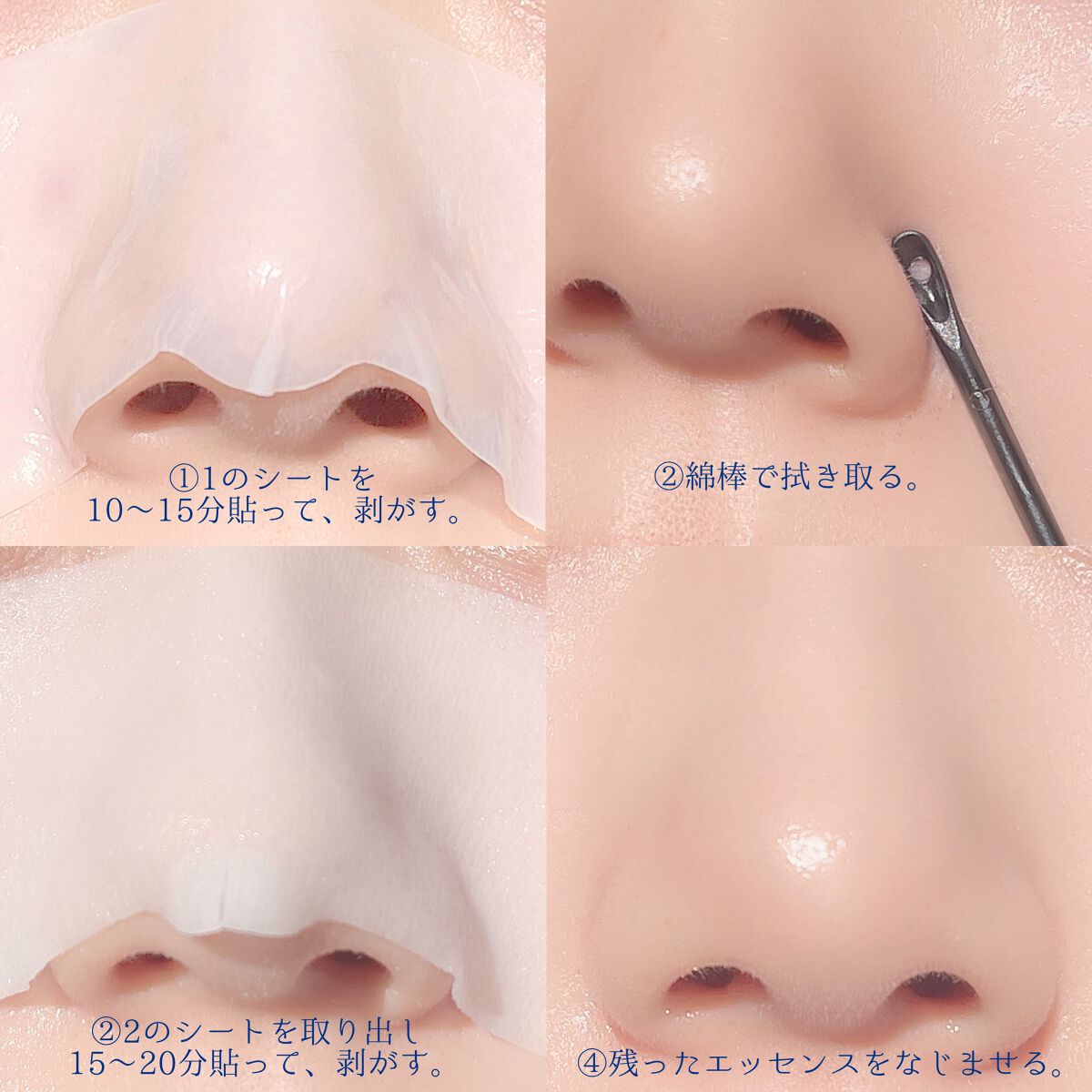 肌に優しくスッと皮脂・黒ずみを取り除く 優しく鼻の黒ずみを除去できて肌の引き締めまでしてくれる5つの賞を受賞した鼻パックと使いやすい形で鼻の皮脂を掻き出すディープクリーンマスター✨ 1剤のシートがバイオセルロースシートなので密着力が高く肌全体にピタッと張り付いて、長時間乾かないため、成分が効果的に浸透してくれるのとぷるんぷるんで気持ちよかったです🩵 こんな簡単に毛穴ケアできるのは有難いです✨ 綿棒でもやってみたいと思います😊