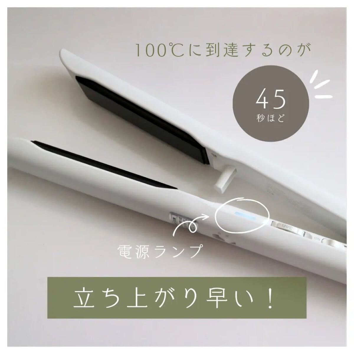 - シンプルでスタイリッシュな長年愛されているホワイト。 ラウンドフォルムを採用し、キレイなストレートはもちろん、カールや波ウェーブ、スパイラルなどのアレンジも簡単。 何種類ものヘアアイロンを使い分けるのは少し面倒、ストレートアイロンだけで様々なアレンジを楽しみたい、そんな願いを実現するヘアアイロンが新登場。 カールがしやすいラウンドフォルムで、内巻き・外巻、波ウェーブなどアレンジ自由自在/少ない力で髪をしっかりキャッチ、疲れにくくアレンジも思い通りに/マイナスイオン搭載/120〜200℃の無段階温度調節機能/忙しい朝にうれしい約45秒のクイックヒートアップ(※1)/消し忘れにも安心な自動電源OFF機能を採用(約30分後)(※2)/シャインコーティングで熱をムラなく伝え、ツヤのある仕上がりに。 (※1) 100℃到達時点 (※2) 電源を入れた時点から