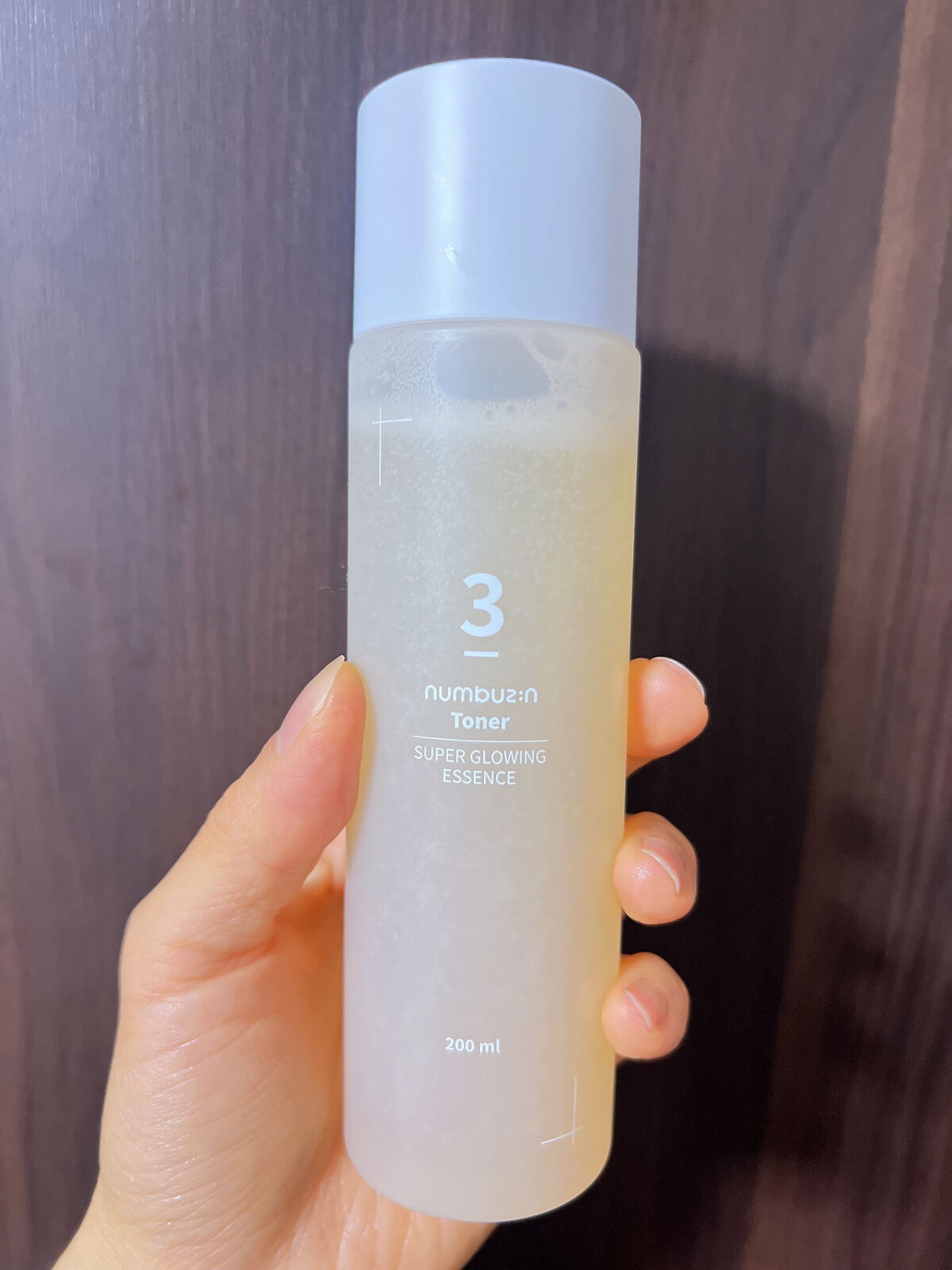 「ナンバーズイン 3番 うるツヤ発酵トナー」を使ってみました。表面と裏面が白色で、側面が鮮やかな黄色のパッケージでした。表面にトナーの絵が描かれているのが印象的でした。開けてみると、表面に描かれた形のトナーが出てきました。透明な黄色のボトルで...