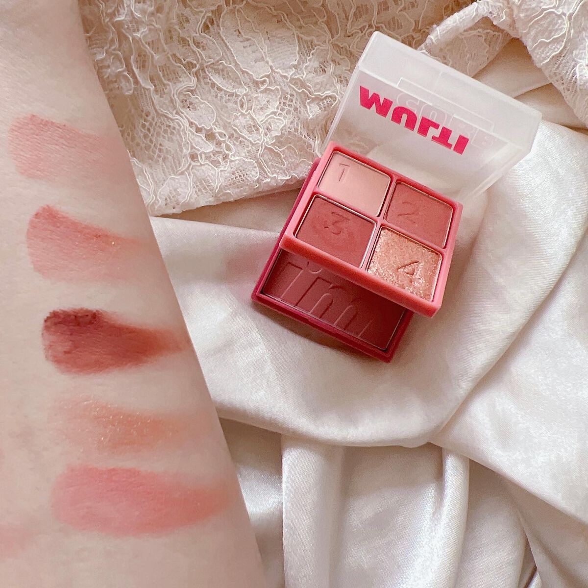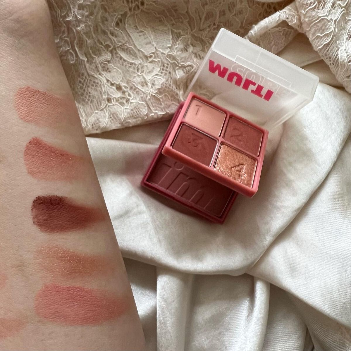 アイシャドウとチークが一つになっているので、これひとつで統一感のあるメイクが完成。 持ち運びにも便利なサイズ感です。 鮮やかなレッドチークが印象的、肌にのせると血色感をしっかりプラスしてくれます。発色が良いので少量でもしっかり色づきます。 ポーチインしてサッと使える(直せる)アイテムとしては重宝しそうです♡