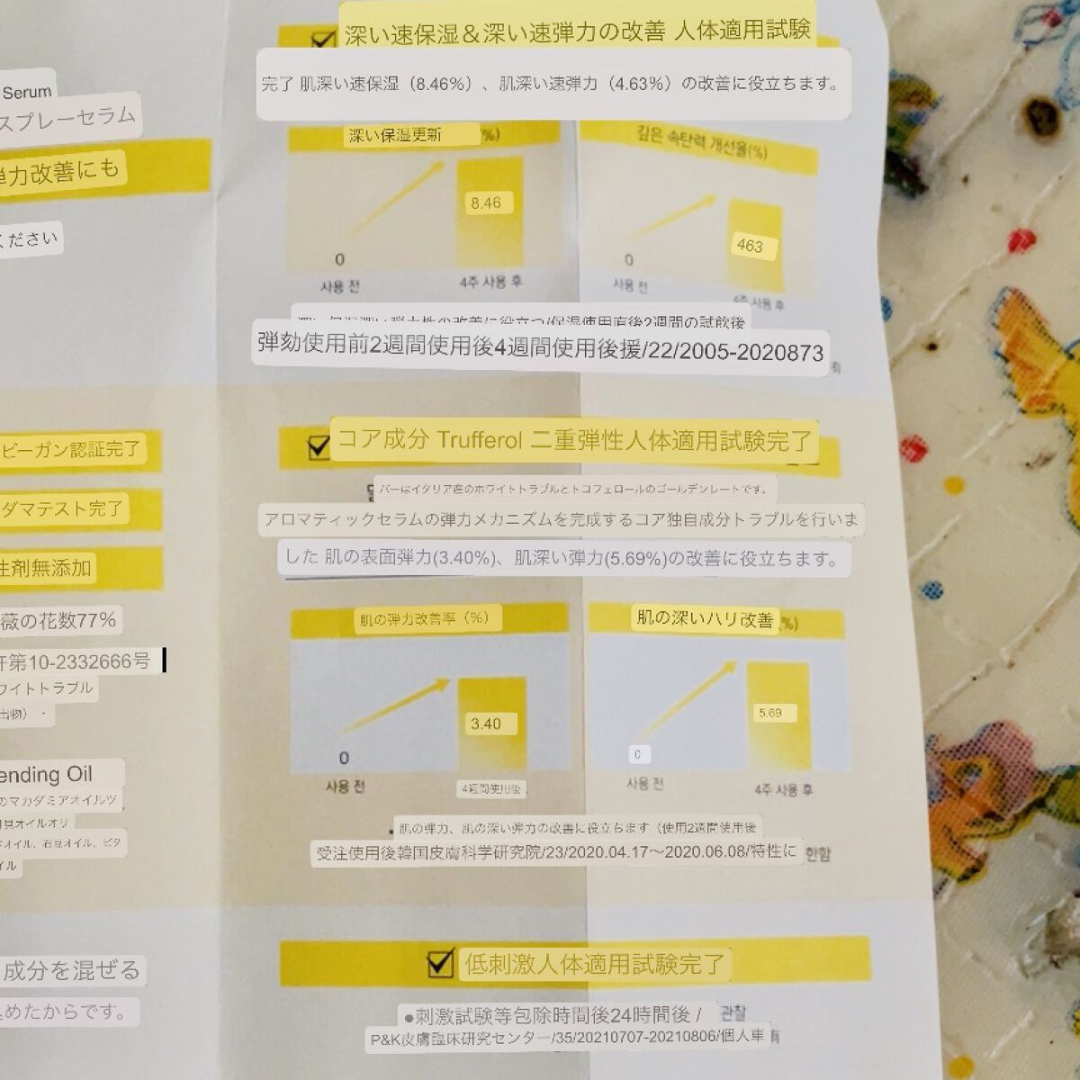- <100ml> 水、BG、グリセリン、ソルビトール、加水分解ヒアルロン酸、カルボマー、香料、トコフェロール、グリチルリチン酸2K、アルギニン、ドクダミエキス、サルビアヒスパニカ種子エキス、DPG、ベタイン、ダイズ油、酢酸トコフェロール、1,2-ヘキサンジオール、ソルビン酸K、ヒマワリ種子油、EDTA-2Na、ヒナギク花エキス、ナイアシンアミド、リモネン、リナロール、シトロネロール、アデノシン、グリセレス-26、ヒドロキシエチルウレア、エーデルワイスエキス、ビフィズス菌培養溶解質、パルミトイルプロリンNa、ニンファエアアルバ花エキス、ジヘプタン酸ネオペンチルグリコール、ハス花エキス、カラスムギエキス、フリージアエキス、メボウキ花/葉/茎エキス、サウスレアインボルクラタエキス、マグワ樹皮エキス、マドンナリリー花エキス、ヘキシルシンナマル、ベニノキ種子油、アボカドオイル、ツベルマグナツムエキス(1、740ppm)、サンシチニンジン根エキス