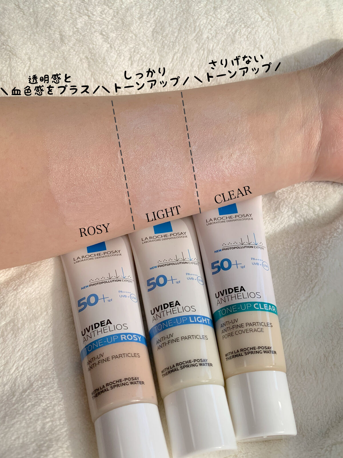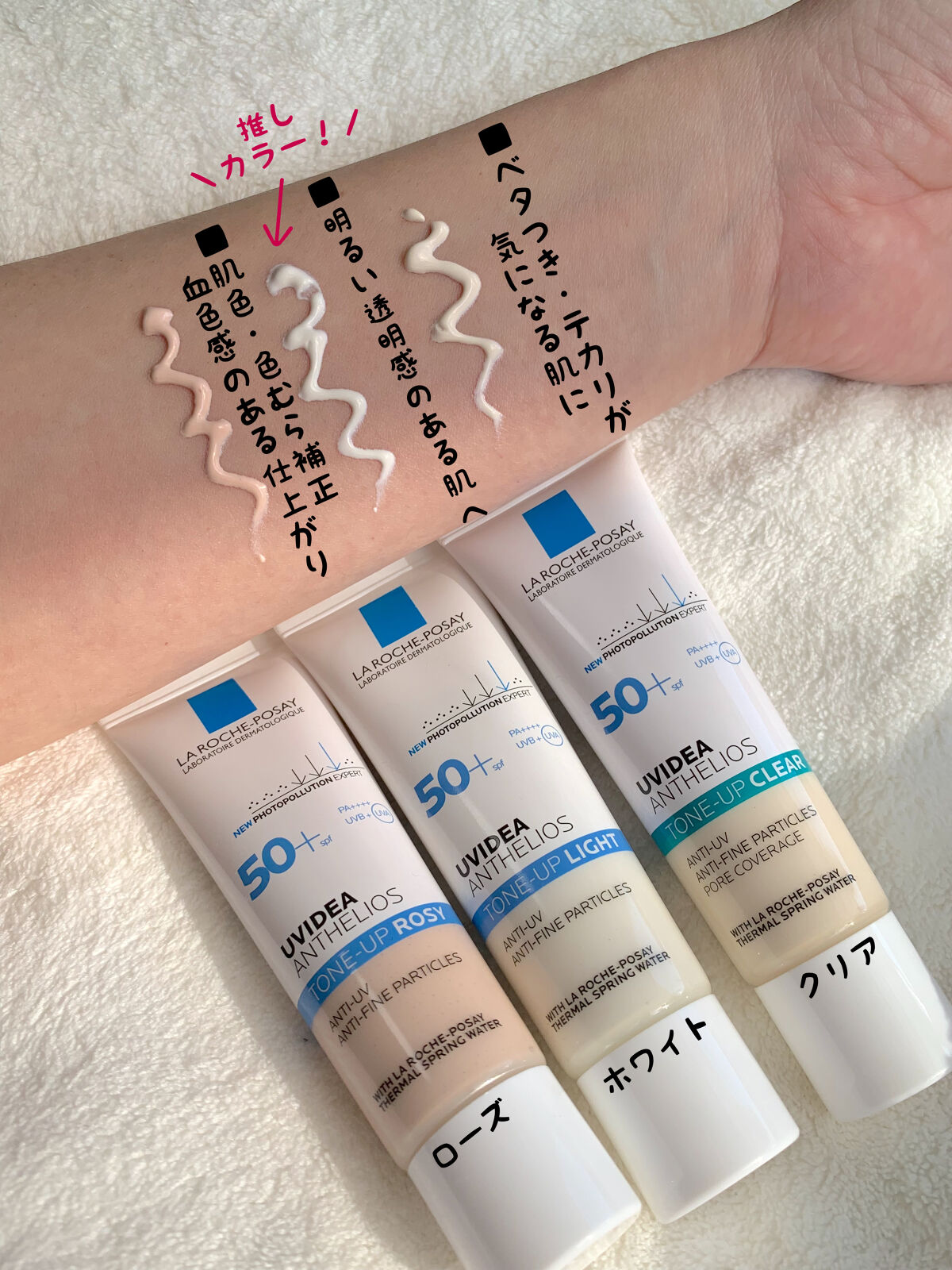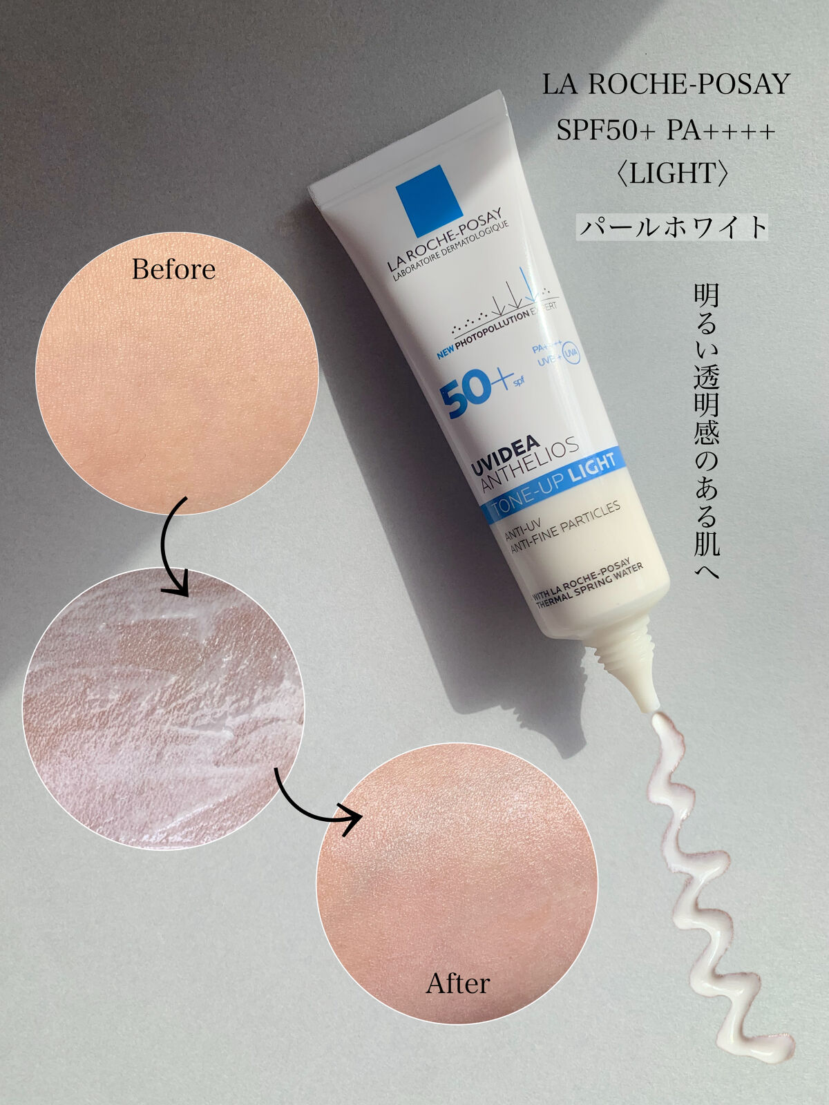 保湿力高めの下地が大好きなのでラロッシュポゼの下地はお気に入りでよく使います✨ かなりトーンアップします🤍自分は肌が黄ぐすみしやすいのでこれくらいトーンアップしてくれた方が時間がたった時にちょうどよくなります✨ 1番のお気に入りはローズです🌹肌から浮かない程よいトーンアップとほんのり血色感がよくなる所が大好きです🥰