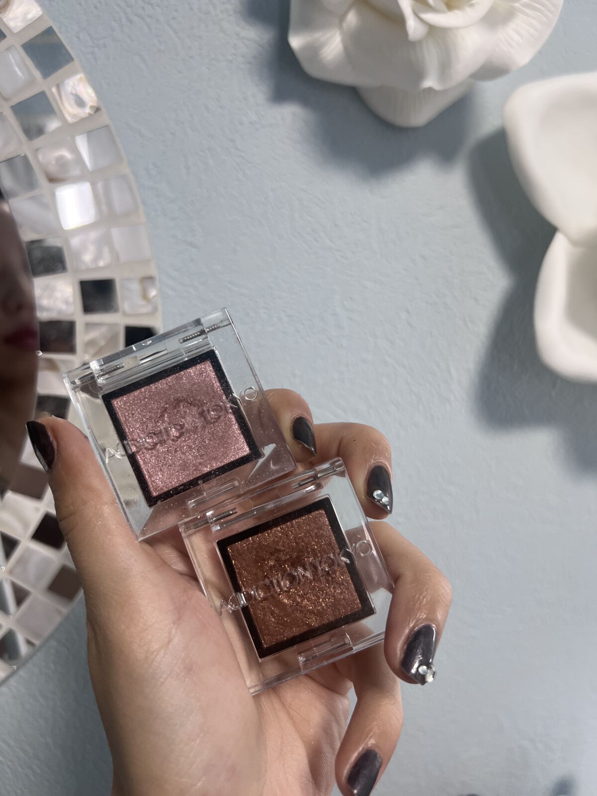 ボビイブラウンの名品ムーンストーンはベースがクリアなのでどんなアイシャドウにも合わせられるし上からトッピングするのにも向いています。 アディクションのマリアージュは2,200円でこの煌めき! 一番安いのに一番輝く、さすがです。 秋蛍は実はトッピングするとベースのシャドウを殺してしまうので目頭、下瞼などポイント使いかベースに使うのがおすすめです。