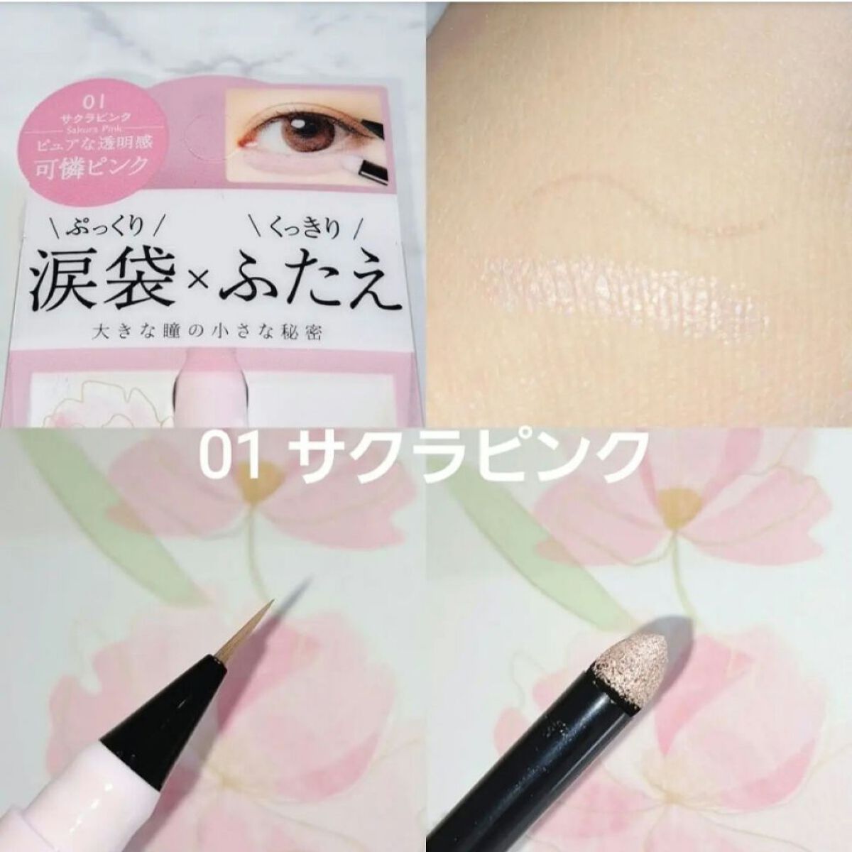 - <コンセプト> ぱっと花ひらくように咲かせよう、わたしの瞳 ~大きな瞳の小さな秘密~ <商品特徴>マルチに使えるパウダー&リキッド ●パウダー ①高輝度パールを贅沢に配合 01、02⇒8種のツヤパールin 03、04⇒13種のガラスパール&ツヤパールin ②独自のシルキーフィット処方 ・軽くのび広がり、ムラなく塗布しやすい ・密着力が高く、粉飛びが少ない ・ウォータープルーフ処方で汗、皮脂、水に強い ③7種の美容保湿成分を配合 ヒアルロン酸Na、水溶性コラーゲン、ローヤルゼリーエキス、ラベンダー花エキス、カミツレ花エキス、リンゴ果実エキス、トレハロース ●リキッド ①影をこっそり仕込む極細ショート筆 ・筆先が短く、しなりにくいから、ブレずに描きやすい ②マルチな使い方ができる ・涙袋の影、ふたえライン、まつ毛のキワ、切開ライン、ノーズシャドウ、人中短縮メイクなど使い方は無限大! ③ウォータープルーフ処方で汗、皮脂、水に強い ④あなた色の影になる3/5発色 ・肌と一体化するように、ぼかした自然な発色でこっそりと影を仕込むことができる。