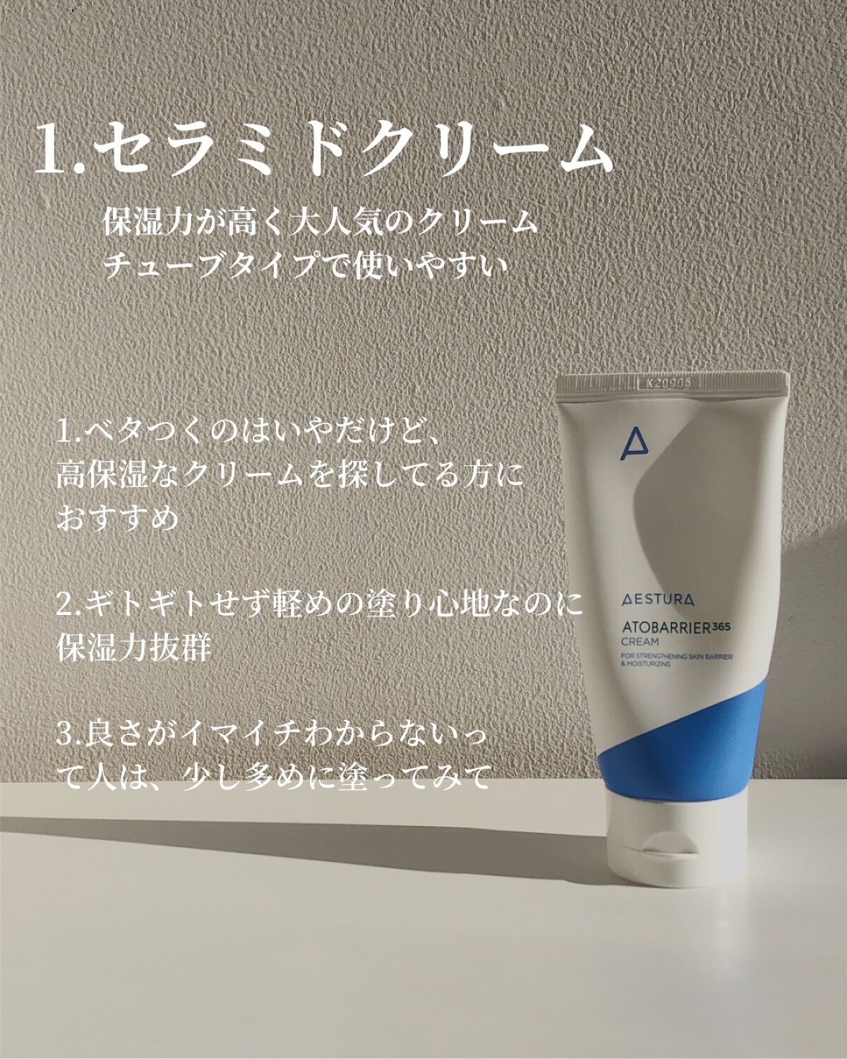 AESTURAさまからいただきました·͜·♡--------------------------《AESTURAアトバリア365クリーム》商品特徴▷▶▷乾燥性敏感肌向けに作られたセラミド配合クリームです🤍肌のバリアをサポートし、乾燥や外的刺...