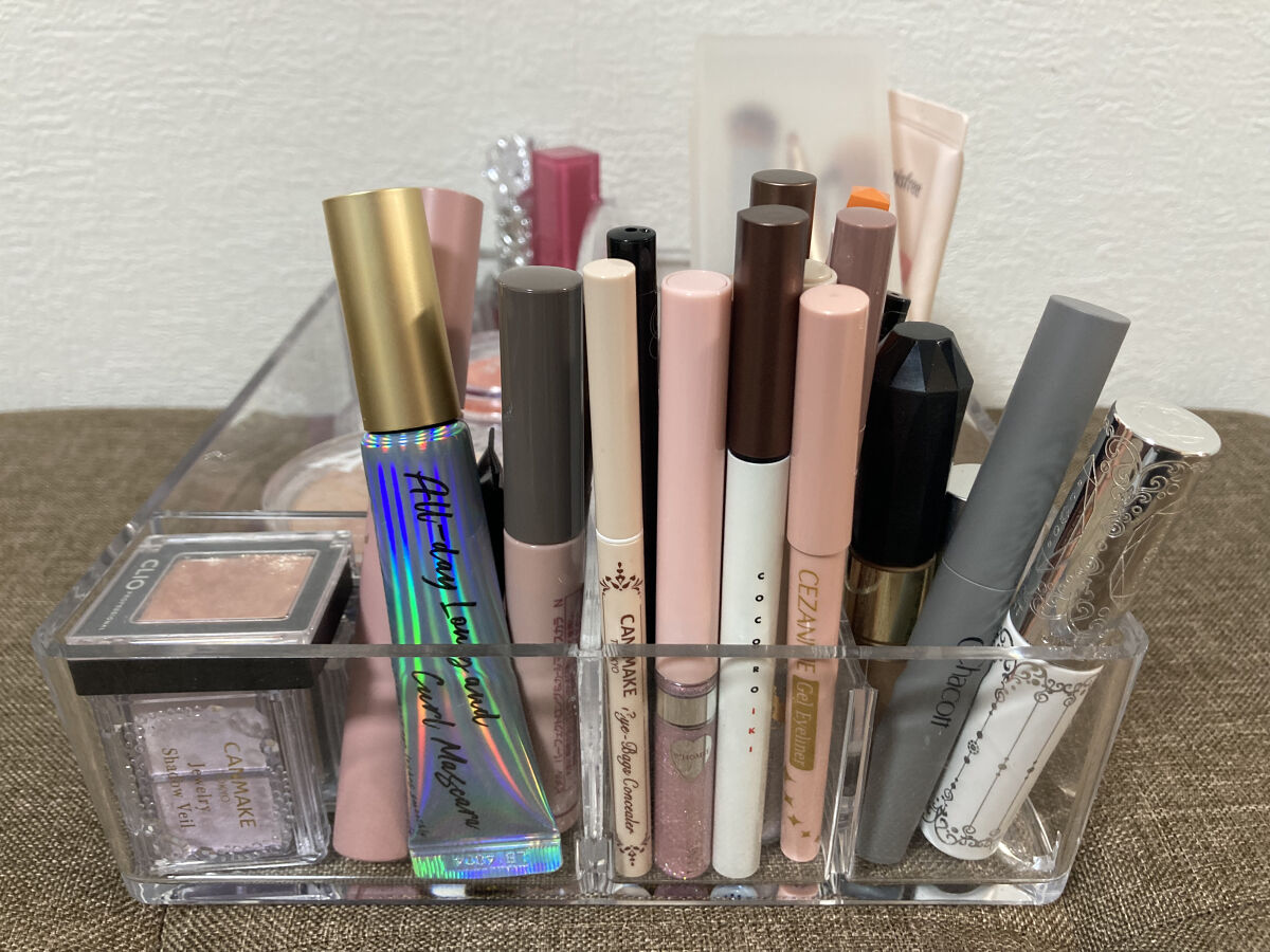 好きなものを飾ったりしつつ、使い勝手や掃除もしやすいように気付いたらこうなっていた私のコスメ収納事情。 アイシャドウパレットを入れてる積み重ねれる引き出しは近所の100均で取り扱ってて、大きさがドンピシャに良い。 全体的に見た目と使い勝手、半々ぐらいにしてあるかな。水拭きできるものばっかりなので掃除も楽。