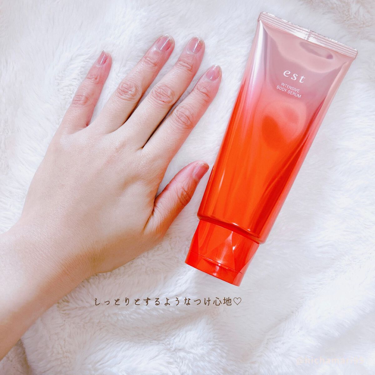 エストのボディ用なんて、期待しかない! 大人の贅沢ここにあり!って感じです。 みずみずしいクリームセラムは、お肌にすっとなじんで、表面はしっとりなめらかな肌触りに。 ただ塗るんじゃなくて、マッサージしながらつけるのがコツ。 自分の体がこっていることに気がつくし、そこに伝わるマッサージの刺激で体がほぐれて、とっても気持ちよかったです。 香りは、月下美人とザクロをイメージ したフローラルフルーティ調。 春夏の薄着になる季節にむけて、自分のボディのケアを頑張っていこうと思います。