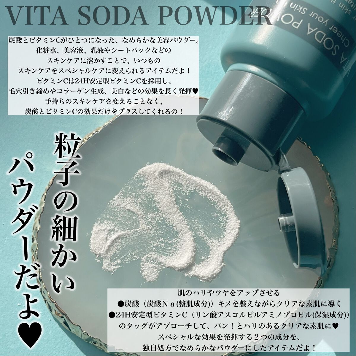 - 炭酸*1と24H安定型ビタミンC*2がひとつになった、なめらかな美容パウダー。化粧水、美容液、ジェル、シートパックなど、水分のあるスキンケアにプラスして、いつものケアがスペシャルに。炭酸*1が肌にうるおいやハリツヤをあたえ、24H安定型ビタミンC*2が、角質層すみずみまで届く。毛穴や乾燥によるくすみ、ハリ、年齢サインなどオトナの悩み肌をクリアに導き、輝くような素肌へ。敏感肌もOK。お顔だけでなく、首やデコルテ、ザラつきの気になる脇やお尻などにもおすすめです。 *1 炭酸Na(整肌成分) *2リン酸アスコルビルアミノプロピル(保湿成分) ※本品に配合しているビタミンC誘導体について、50℃の中性水溶液に溶解させて変化を確認したところ、24時間後でも99%以上が分解せずに存在しているということが試験によりわかりました