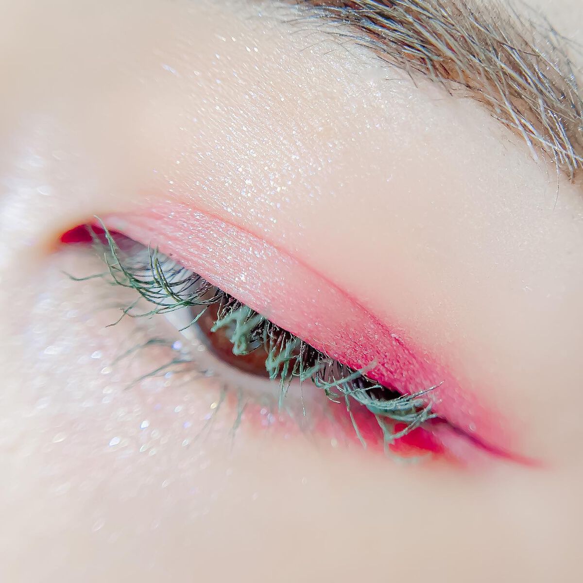 ピンクにグレージュも良いですね👌💗 今日は可愛らしい感じにしてみました💕 上下瞼黒目〜目頭側にラメを塗ってキラキラさせております🤩 目尻はマットのピンクを濃いめに重ねて💗 グレージュのアイライナーと相性◎
