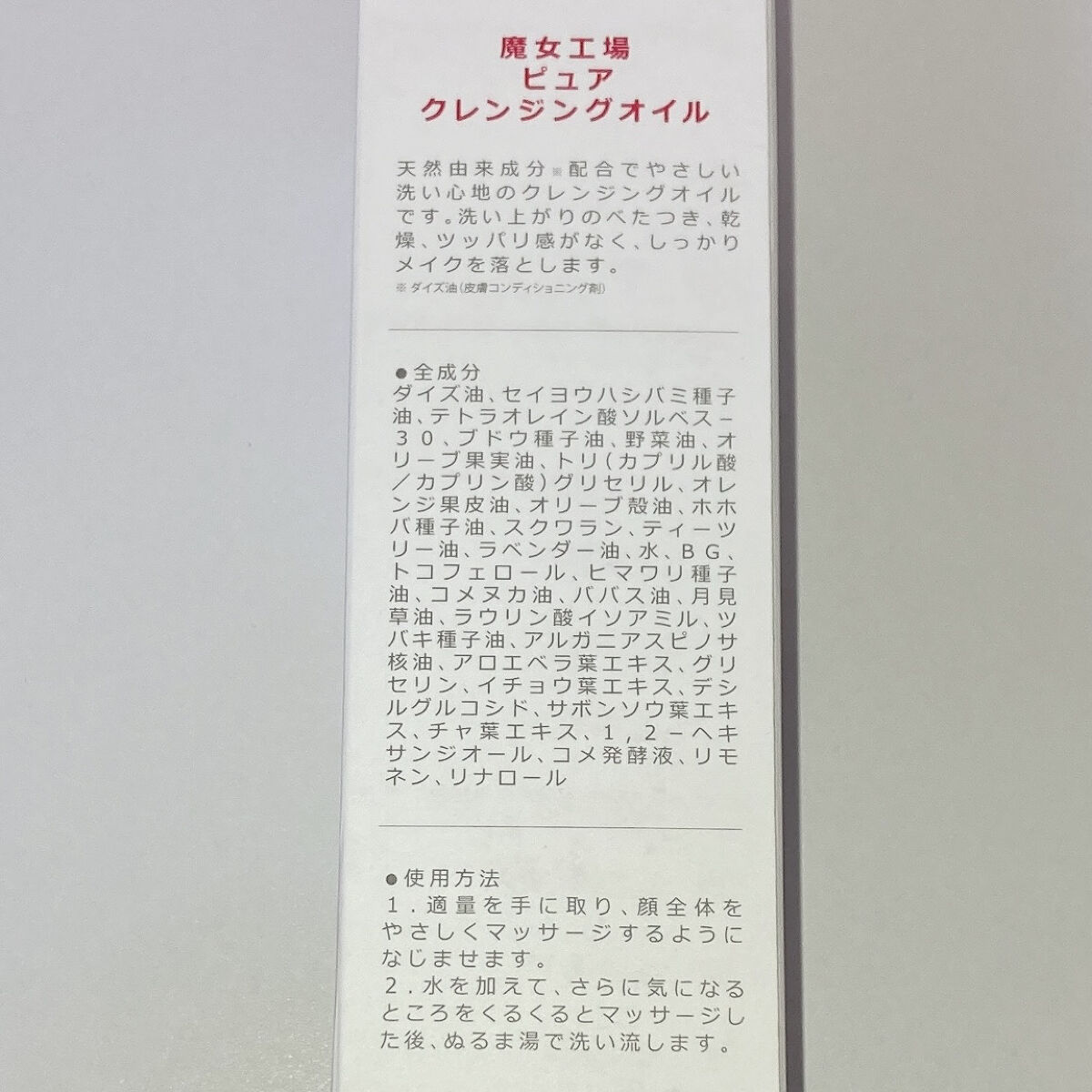 - <200ml> ダイズ油、セイヨウハシバミ種子油、テトラオレイン酸ソルベス-3 0、ブドウ種子油、野菜油、オリーブ果実油、トリ( カプリル酸/ カプリン酸)グリセリル、オレンジ果皮油、オリーブ殻油、ホホバ種子油、スクワラン、ティーツリー葉油、ラベンダー油、水、BG、トコフェロール、ヒマワリ種子油、コメヌカ油、ババス油、月見草油、ラウリン酸イソアミル、ツバキ種子油、アルガニアスピノサ核油、アロエベラ葉エキス、グリセリン、イチョウ葉エキス、デシルグルコシド、サボンソウ葉エキス、チャ葉エキス、1 ,2 - ヘキサンジオール、コメ発酵液、リモネン、リナロール <100ml> ダイズ油、セイヨウハシバミ種子油、テトラオレイン酸ソルベス-3 0、ブドウ種子油、野菜油、オリーブ果実油、トリ( カプリル酸/ カプリン酸)グリセリル、オレンジ果皮油、オリーブ殻油、ホホバ種子油、スクワラン、ティーツリー葉油、ラベンダー油、水、BG、トコフェロール、ヒマワリ種子油、コメヌカ油、ババス油、月見草油、ラウリン酸イソアミル、ツバキ種子油、アルガニアスピノサ核油、アロエベラ葉エキス、グリセリン、イチョウ葉エキス、デシルグルコシド、サボンソウ葉エキス、チャ葉エキス、1 ,2 - ヘキサンジオール、コメ発酵液、リモネン、リナロール <2023年末エディション大容量サイズ(300mL)> ダイズ油、セイヨウハシバミ種子油、テトラオレイン酸ソルベス-3 0、ブドウ種子油、野菜油、オリーブ果実油、トリ( カプリル酸/ カプリン酸)グリセリル、オレンジ果皮油、オリーブ殻油、ホホバ種子油、スクワラン、ティーツリー葉油、ラベンダー油、水、BG、トコフェロール、ヒマワリ種子油、コメヌカ油、ババス油、月見草油、ラウリン酸イソアミル、ツバキ種子油、アルガニアスピノサ核油、アロエベラ葉エキス、グリセリン、イチョウ葉エキス、デシルグルコシド、サボンソウ葉エキス、チャ葉エキス、1 ,2 - ヘキサンジオール、コメ発酵液、リモネン、リナロール <2024年さくらエディション限定パッケージ(200mL)> ホホバ種子油、チャ葉エキス、アロエベラ葉エキス、トコフェロール、スクワラン、グリセリン、BG、水、オリーブ果実油、テトラオレイン酸ソルベス-30、オリーブ殻油、1,2-ヘキサンジオール、ババス油、セイヨウハシバミ種子油、ラウリン酸イソアミル、ティーツリー油、ブドウ種子油、イチョウ葉エキス、月見草油、コメ発酵液、デシルグルコシド、トリ(カプリル酸/カプリン酸)グリセリル、ヒマワリ種子油、コメヌカ油、野菜油、アルガニアスピノサ核油、ダイズ油、サボンソウ葉エキス、ツバキ種子油、ラベンダー油、オレンジ果皮油 <ウィキッドエディション(300ml)> 水、BG、グリセリン、スクワラン、トコフェロール、アロエベラ葉エキス、チャ葉エキス、ホホバ種子油、オリーブ果実油、オレンジ果皮油、ティーツリー葉油、ラベンダー油、ツバキ種子油、サボンソウ葉エキス、ダイズ油、アルガニアスピノサ核油、野菜油、コメヌカ油、ヒマワリ種子油、デシルグルコシド、リモネン、コメ発酵液、リナロール、月見草油、イチョウ葉エキス、ブドウ種子油、ラウリン酸イソアミル、セイヨウハシバミ種子油、ババス油、オリーブ殻油、トリ( カプリル酸/ カプリン酸)グリセリル、テトラオレイン酸ソルベス-3 0、1 ,2 - ヘキサンジオール
