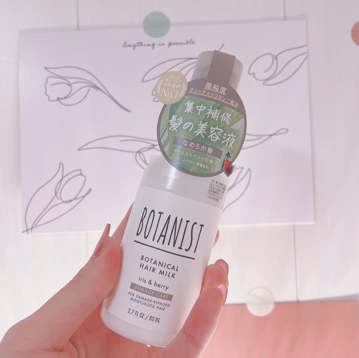 お店のテスターで何気なく使ったBOTANISTのヘアミルクに感動…♡ 使い心地も香りも好みだったので購入! 艶やかで甘美なアイリスとベリーの香り🍓 甘すぎず、スッキリしすぎずちょうどいい香り! 冬は静電気が気になりますが、髪の毛をしっかり潤して静電気を防いでくれます!