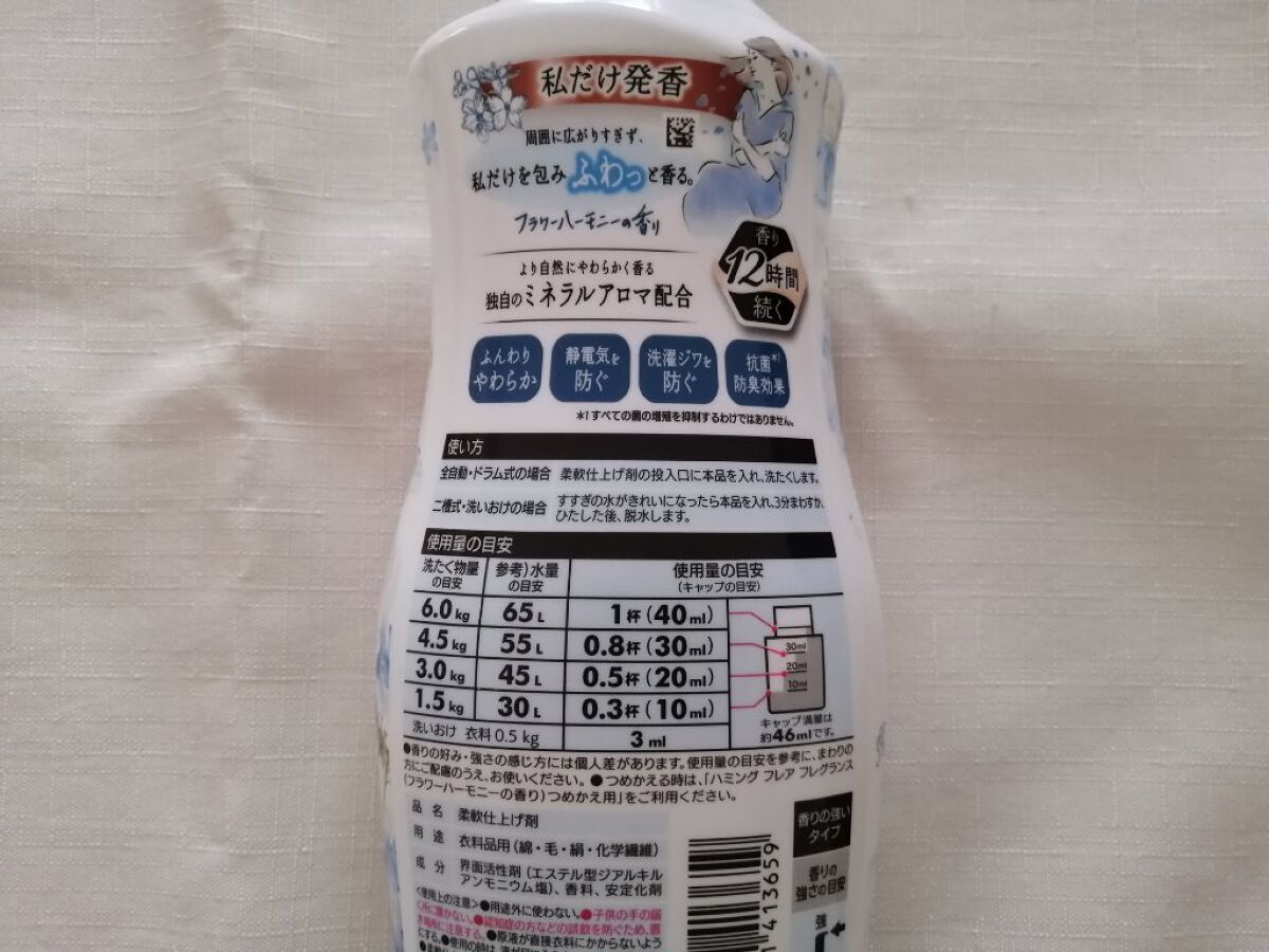 -ハミングフレア フラワーハーモニー- 今回紹介するのはハミングフレア フラワーハーモニーです!【商品について】・グリーンアップルとミューゲを加え爽やかな香り・洗たくジワを防ぐや抗菌・防臭効果あり・静電気を防ぐ【使ってみて感じたこと】〇・ふわ...