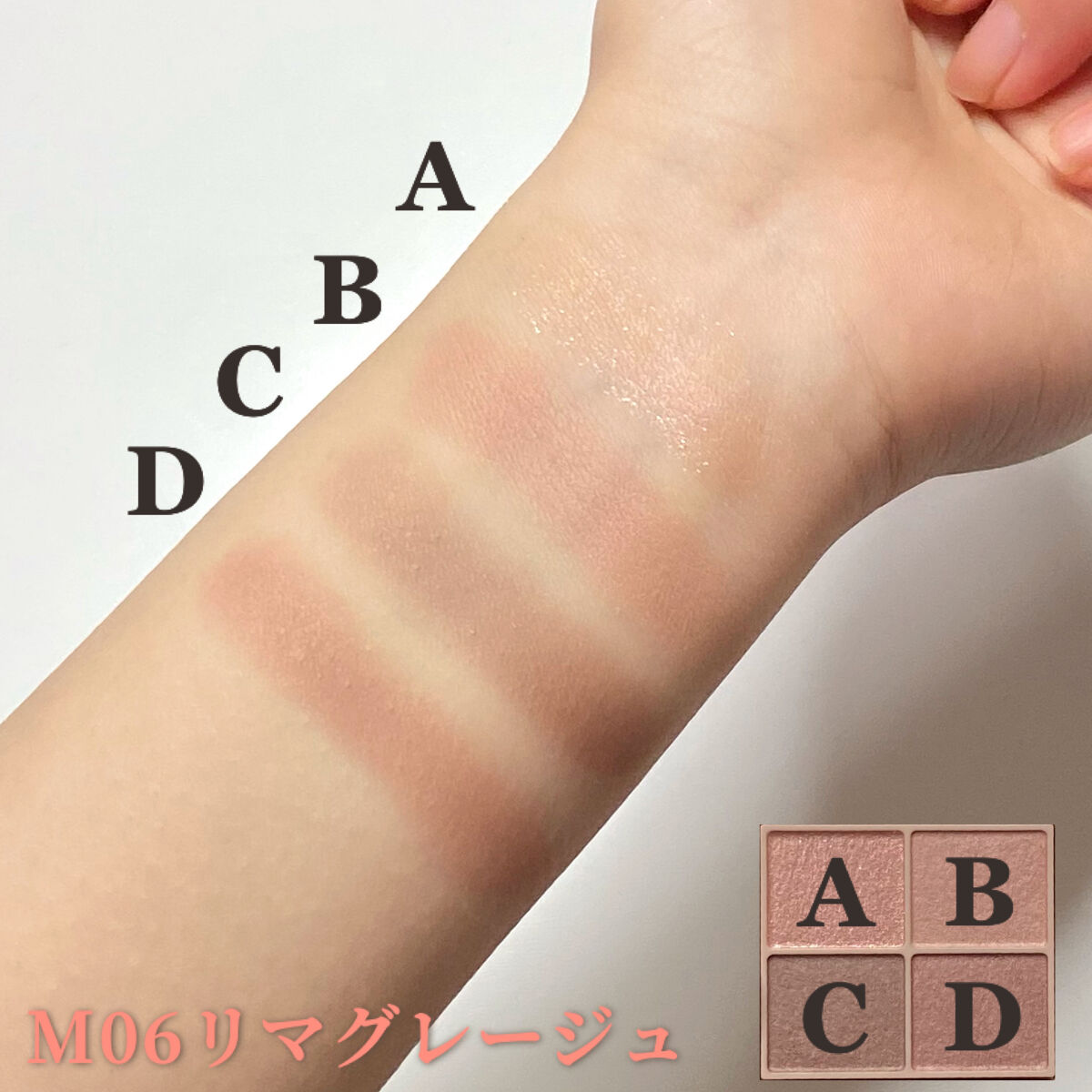 淡いピンクアイシャドウ🐰 柔らかいピンクとベージュが良く馴染みます♪ 甘さ控えめだからシチュエーション・年齢問わず使えそうです。 期待以上のナチュラルなかわいさ✨ リピ確定です!