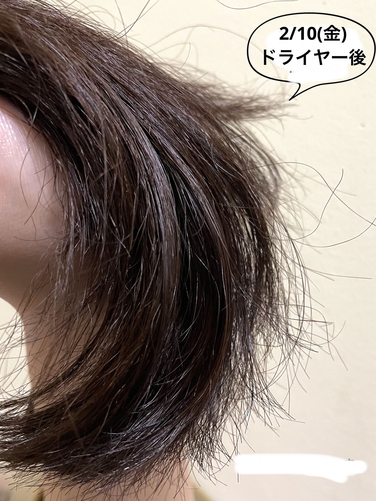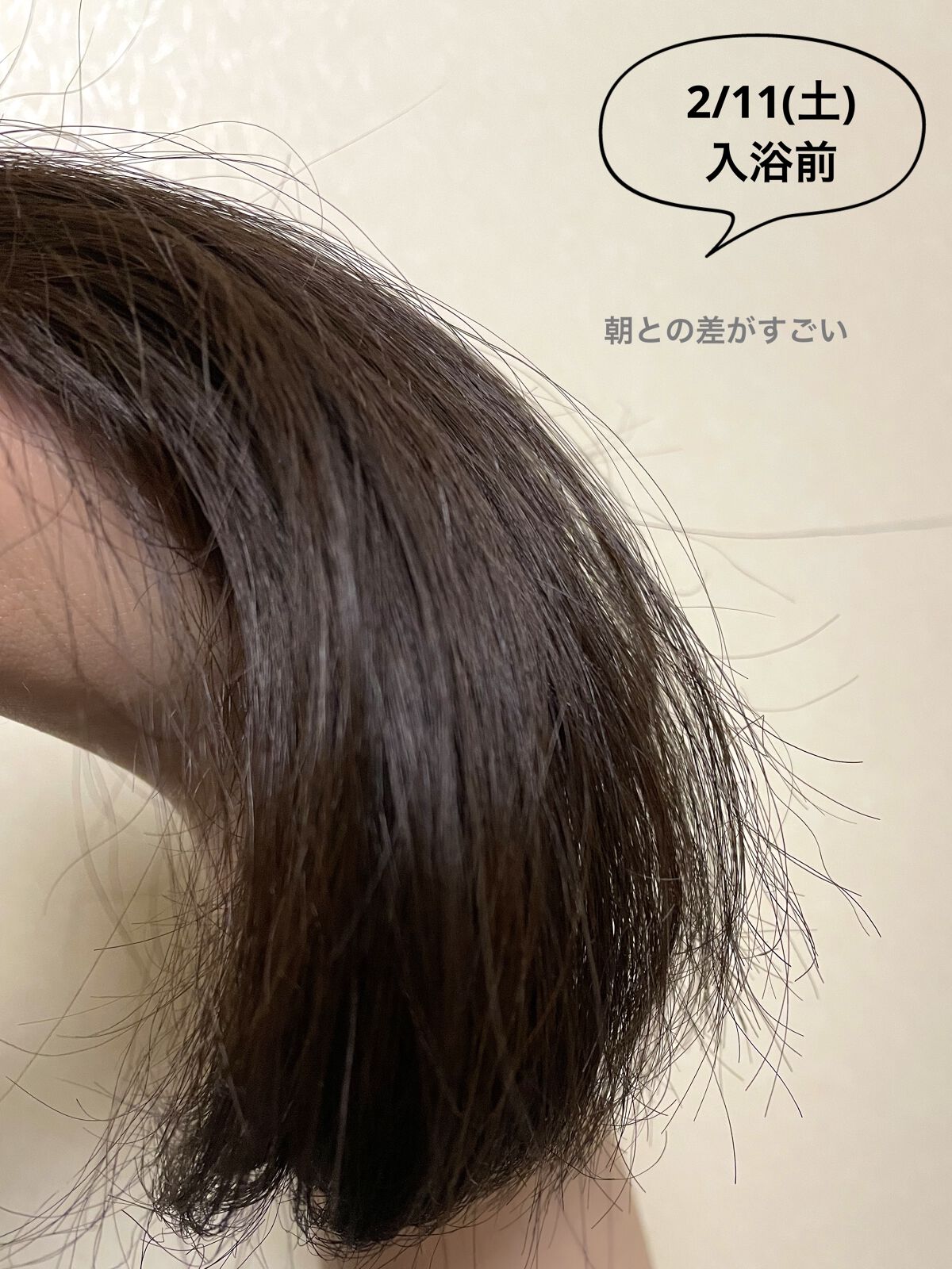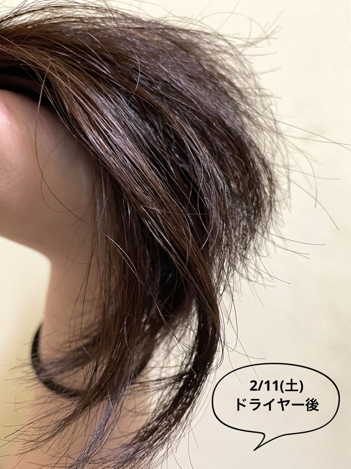 ヘアマスク直後だからとても指通りが良い。 インバスケアのおかげでパサつきが抑えられている気が増してきた。 寝起きなのに、絡まりがあまりない。 ヘアマスクとインバスケアの効果が出てきたのかな? ドライヤー後の髪は、いつもより少しだけボリュームダウンしてるような…?(乾燥で膨らむ)