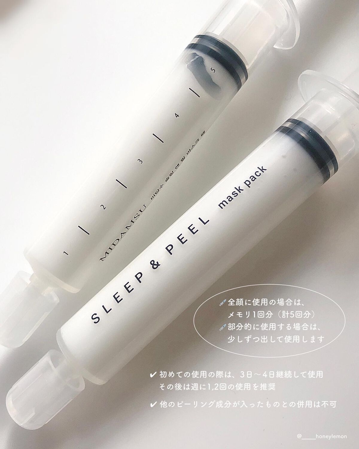 [MIDAMSU]⚫︎スリープ&ピールマスクパック▪️寝ている間に角質ケア▪️低刺激ミルクピーリング▪️メントールで毛穴引き締めをサポート▪️注射器型で衛生的▪️アボカドオイル配合で肌をしっとり保湿何本もリピしてるスリーピングマスク✨パケとキ...