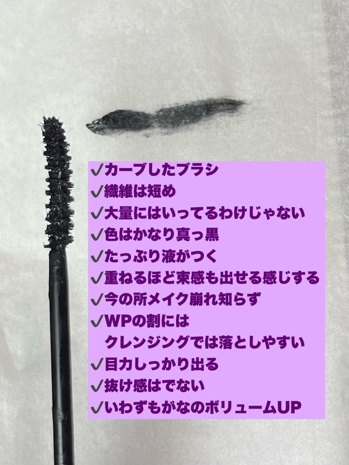 | 着け心地が軽いし 短いまつ毛でも捕らえてくれて 下まつ毛も塗りやすいです! | 詳細を見る |