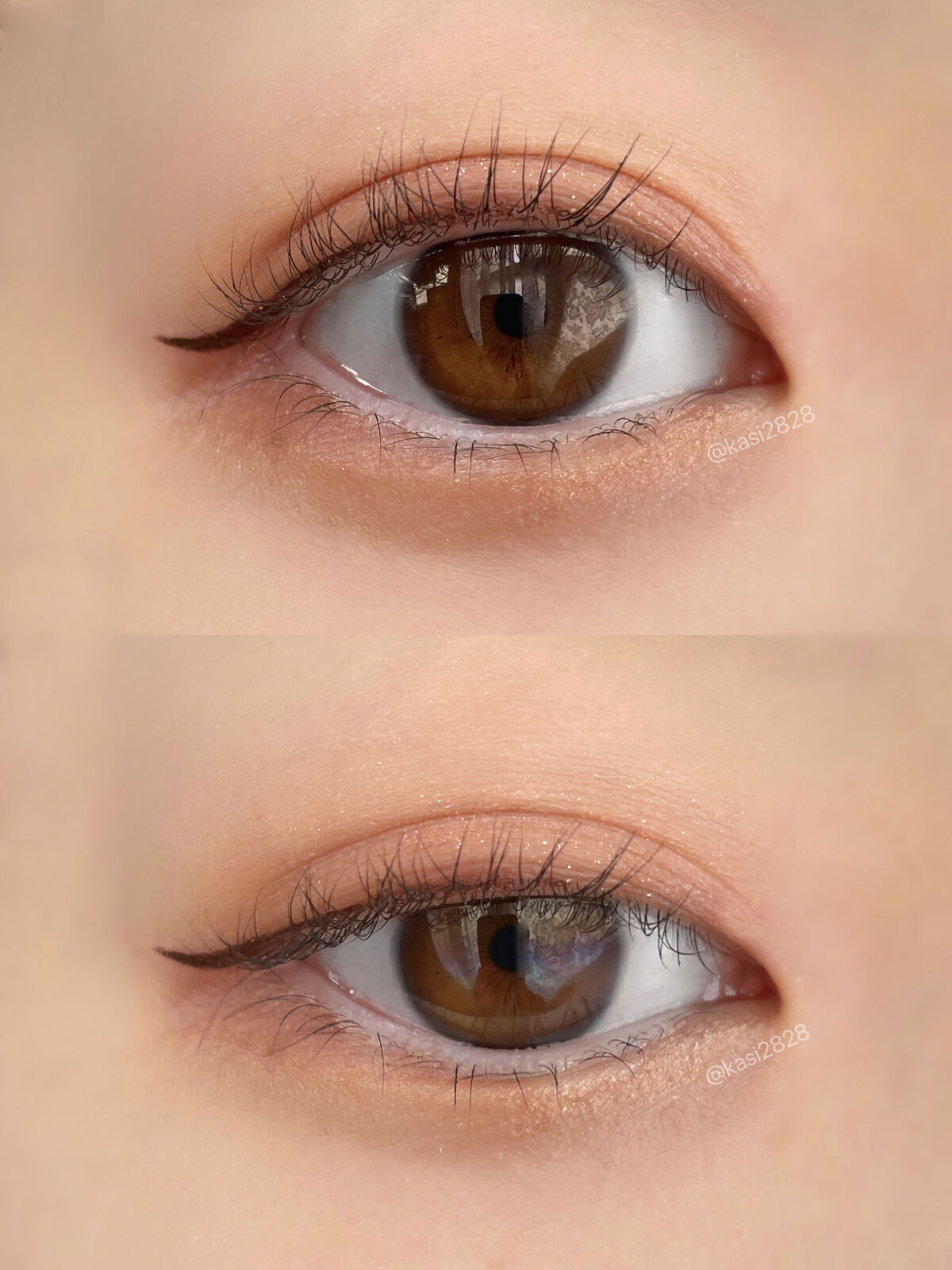 MOLAKプロデュース&イメージモデル宮脇咲良さん▶︎ドーリッシュブラウン3色のトーンで水光グラデーションが瞳に馴染み儚い目元に。細めのふちがあるのでくりっとお人形さんのような瞳に🧸💕水光グラデーションが綺麗すぎて感動した!!元からこの目です...