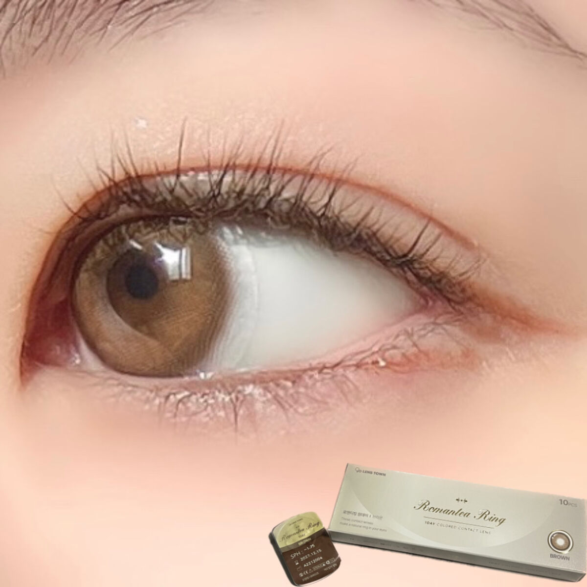 深い海に差し込む日差しのような明るくスッキリしたイメージのカラコン Romantea Moodが美しい発色…! ナチュラルに目元を印象付けるデザイン。発色も裸眼に馴染みながら色づくからムードのある目元を演出🌙 着色直径小さめの13.0mm👌🏻 裸眼が明るめの茶色ですが、サテングレーを使用してもそこまで不自然にならず使いやすいです🙆🏼♀️