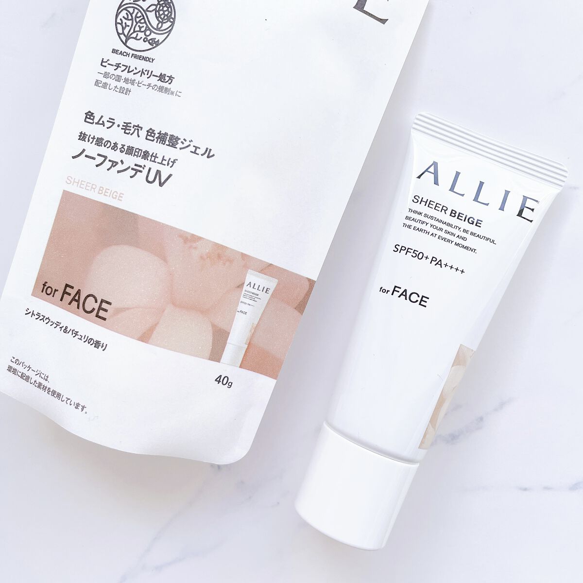 ファンデが要らないぐらいカバー力があるし、厚塗り感なくてみずみずしかった(* ᴗ͈ˬᴗ͈)”, “日やけ止めだけで至近距離でも毛穴が目立たない仕上がりへシアーベージュのノーファンデUVセット 美容液成分(保湿)配合ヒアルロン酸Na