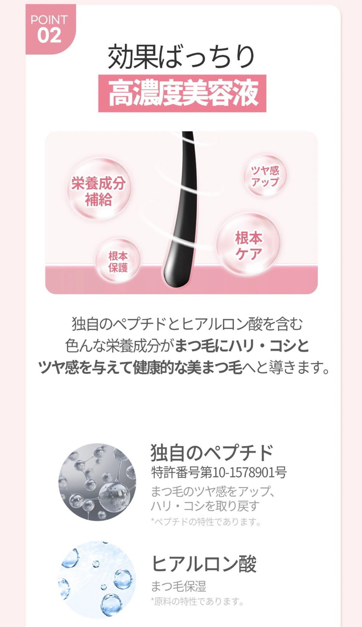 | サラサラの美容液じゃなくて少しとろみがついているからしっかりまつ毛に塗れるのも良い! | 詳細を見る | ||