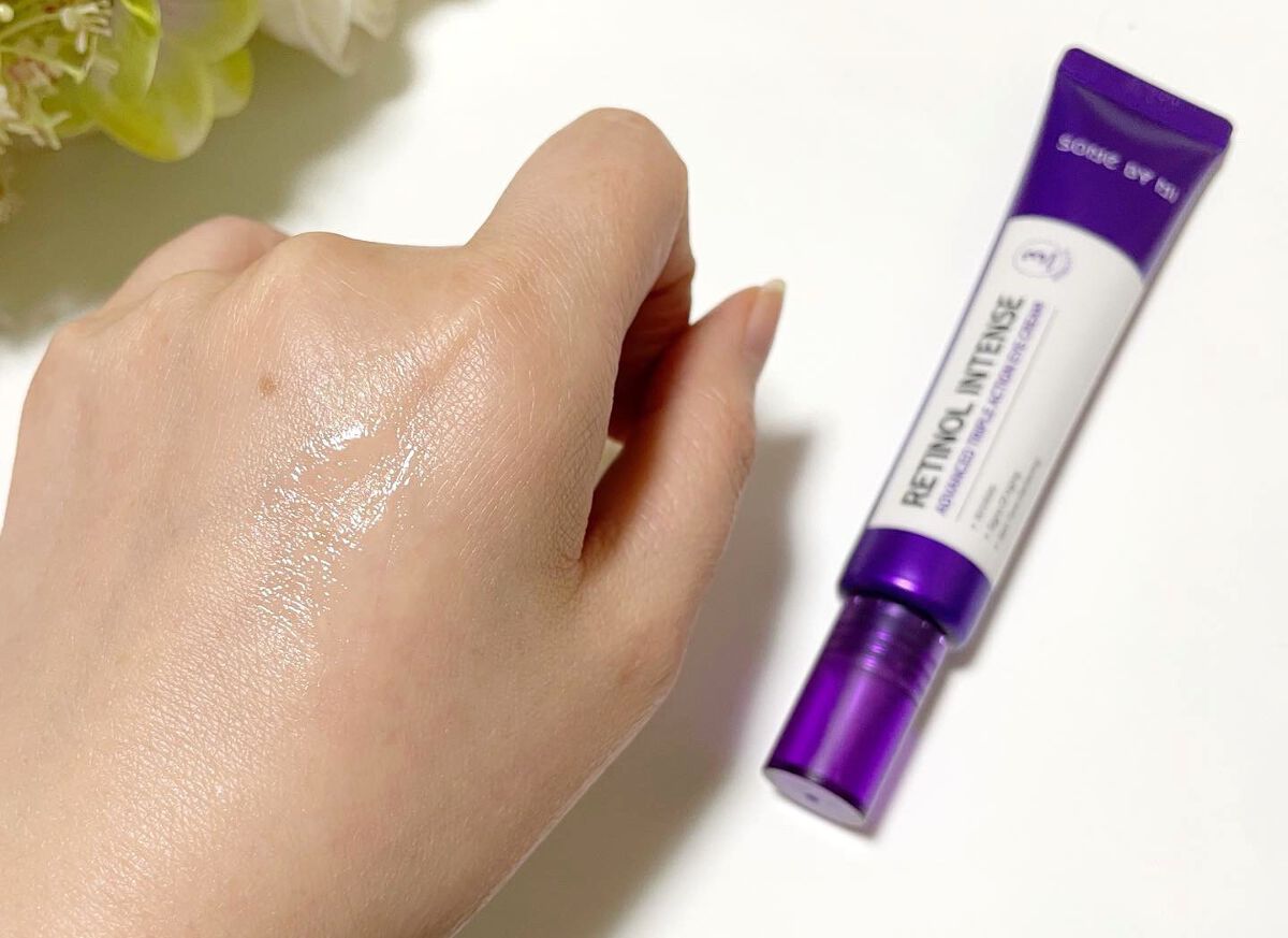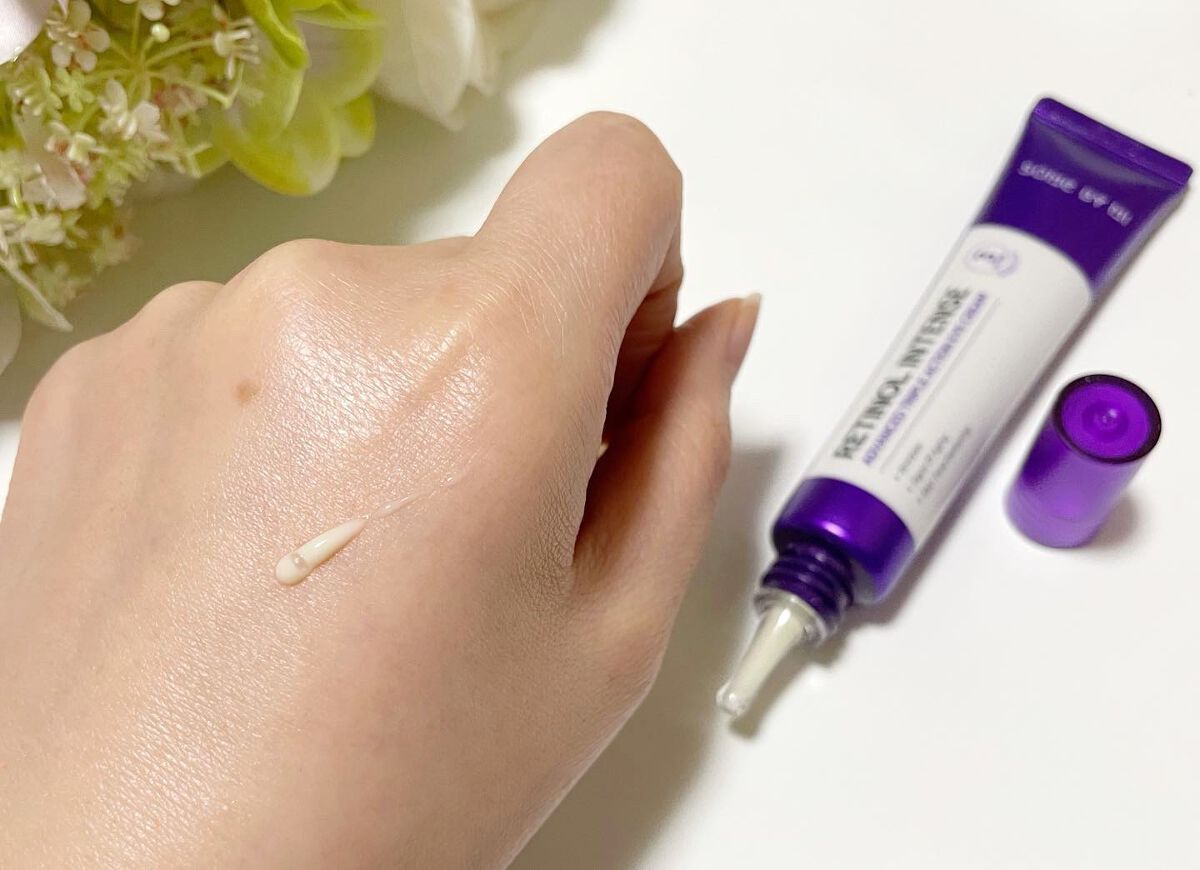 サムバイミーは、トラブル肌、敏感肌に注意を注いでいるスキンケアブランド☝️ そんなサムバイミーが作った、レチノール入りのアイクリームって👀⤴️⤴️ レチノール0.1%+グルタチオン配合で、レチノール入りなのに初心者でも使いやすい😆 クリーム色の、滑らかなクリーム状テクスチャー😌 チューブの先が細く、少量も出しやすいし目元ケアしやすい⤴️