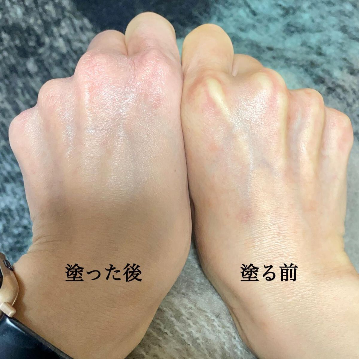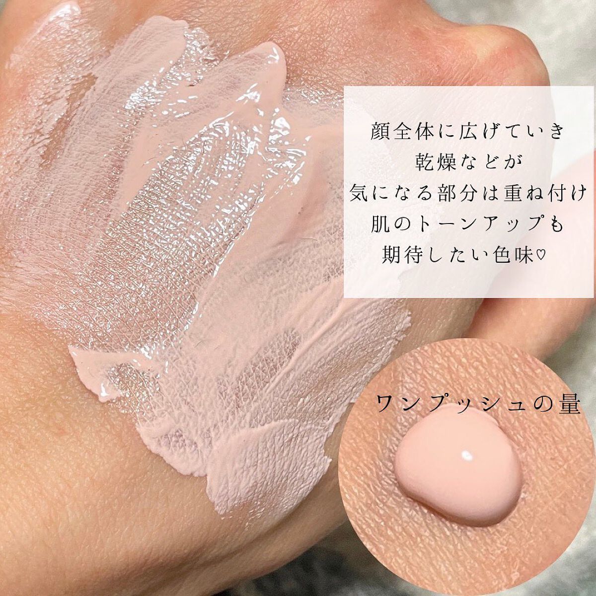 クリームのテクスチャーで、液だれもなく、肌に塗っていくとなめらかに伸びていくし、明るいラベンダーの色味って、一気に肌色トーンアップするから好き✨ 塗ったあとの肌見ると、トーンアップ感だけでなく、毛穴もカバーしてくれている仕上がりににんまりしちゃいます🤭 『日焼け止めだけど、プライマーとしても使える』というセールスポイント通りの使用感💜