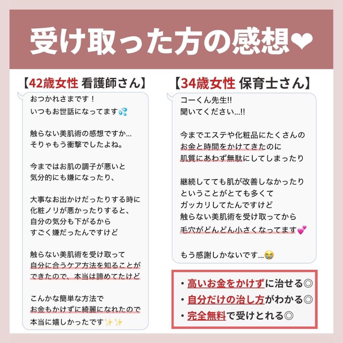 あなたの毛穴の開きが治らない 原因を突き止めて正しいスキンケアをしてもらいたいと思い 無料で"触らない美肌術"を プレゼントしています🎁 プレゼントの受け取りは プロフィールのリンクから お願いします🥰🥰✨✨