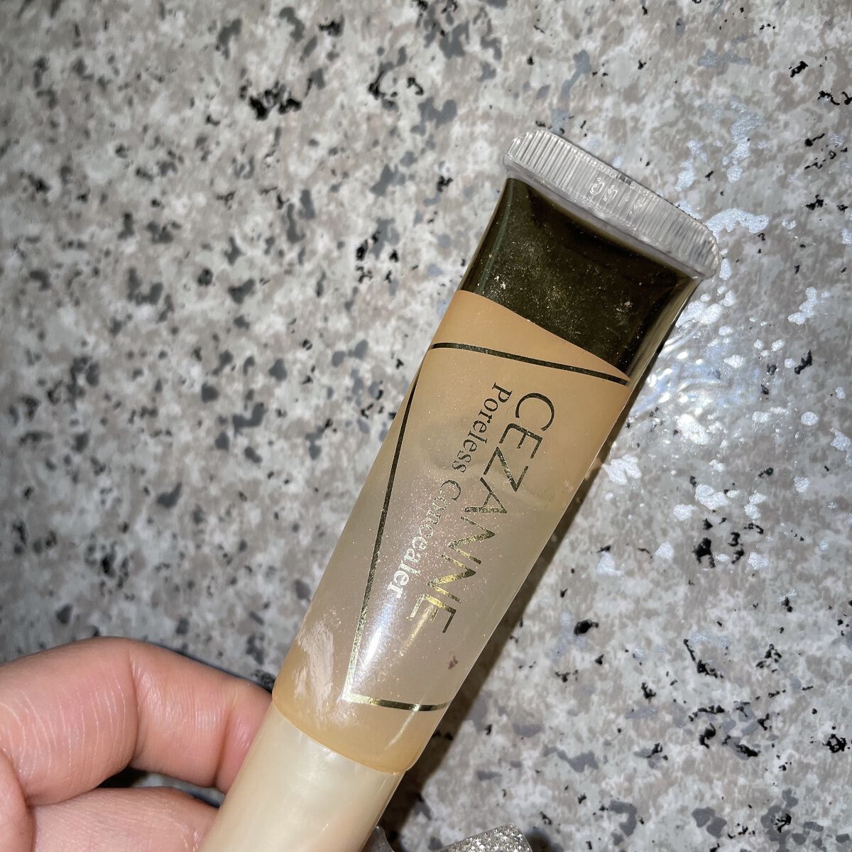 セザンヌの毛穴レスコンシーラーです♪硬めのテクスチャーで、毛穴の凸凹をフラットにしてくれます。塗った後はサラサラです。この後に下地やファンデーションを重ねますが、いつもより綺麗に仕上がりました☺️皮脂吸着パウダー配合なので、マスクをつけて過ご...
