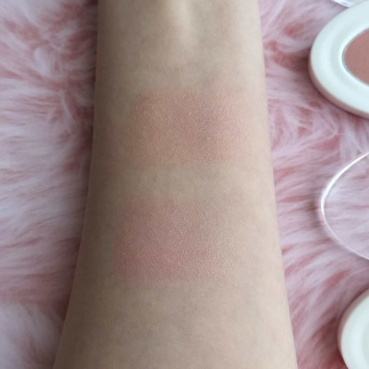 薄づきなのでボンッと濃くつくことがなく、調整しやすいです! 色味が柔らかい感じなので可愛い雰囲気が好きな方にオススメです✨ 落ちづらいといわれるとそこは少し微妙かなっと思います🤔 ですが、パケも色味も可愛いので他のカラーも気になります!