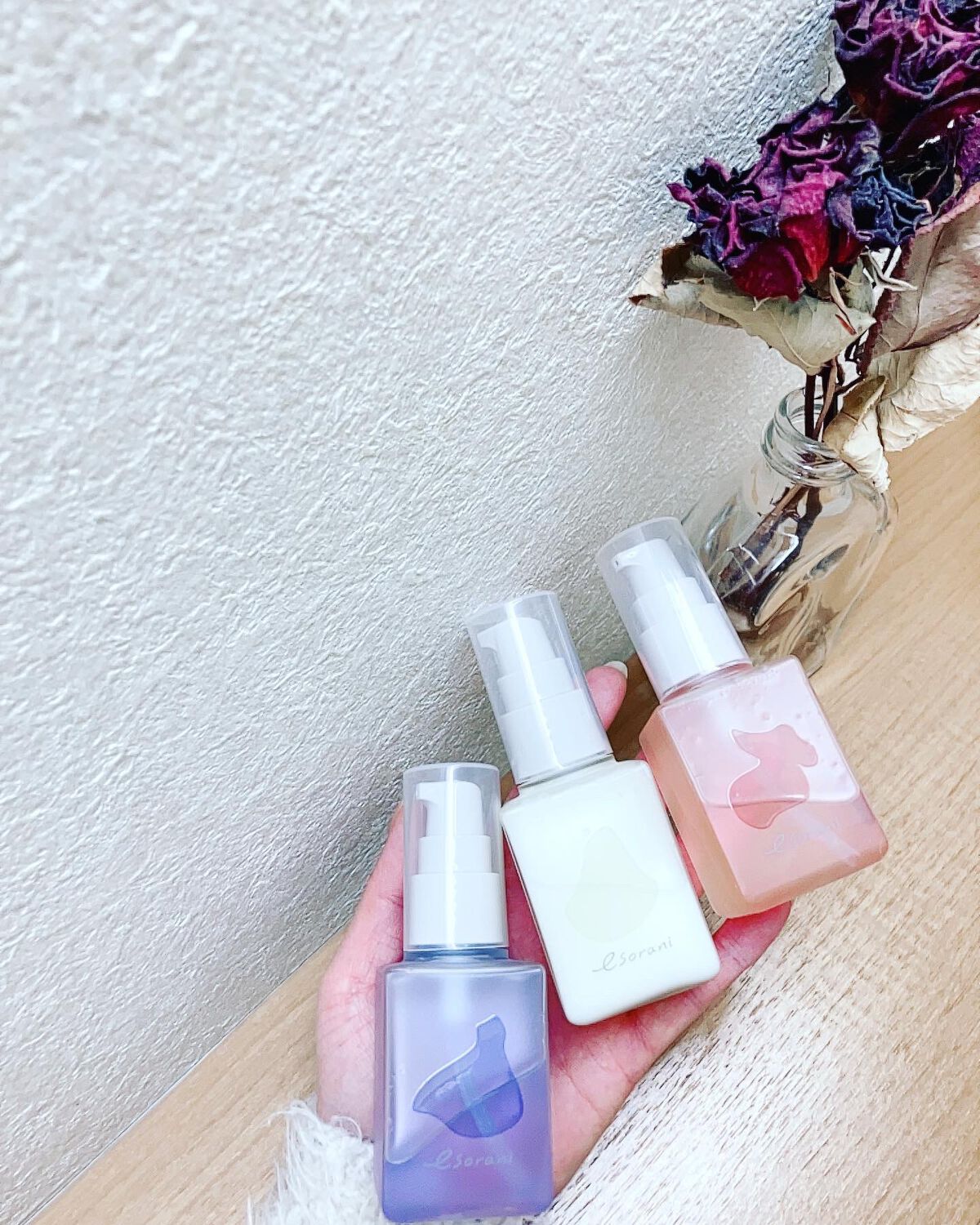 エソラニ思いでオイル01思いでオイル02思いでオイル03¥3,300見た目がとても可愛くて全種類購入してしまいました。存在は前から知ってたのですが、数年経ってやっぱり欲しくて購入。撹拌して使う美容オイルです。それぞれ空の状態をイメージした色と...