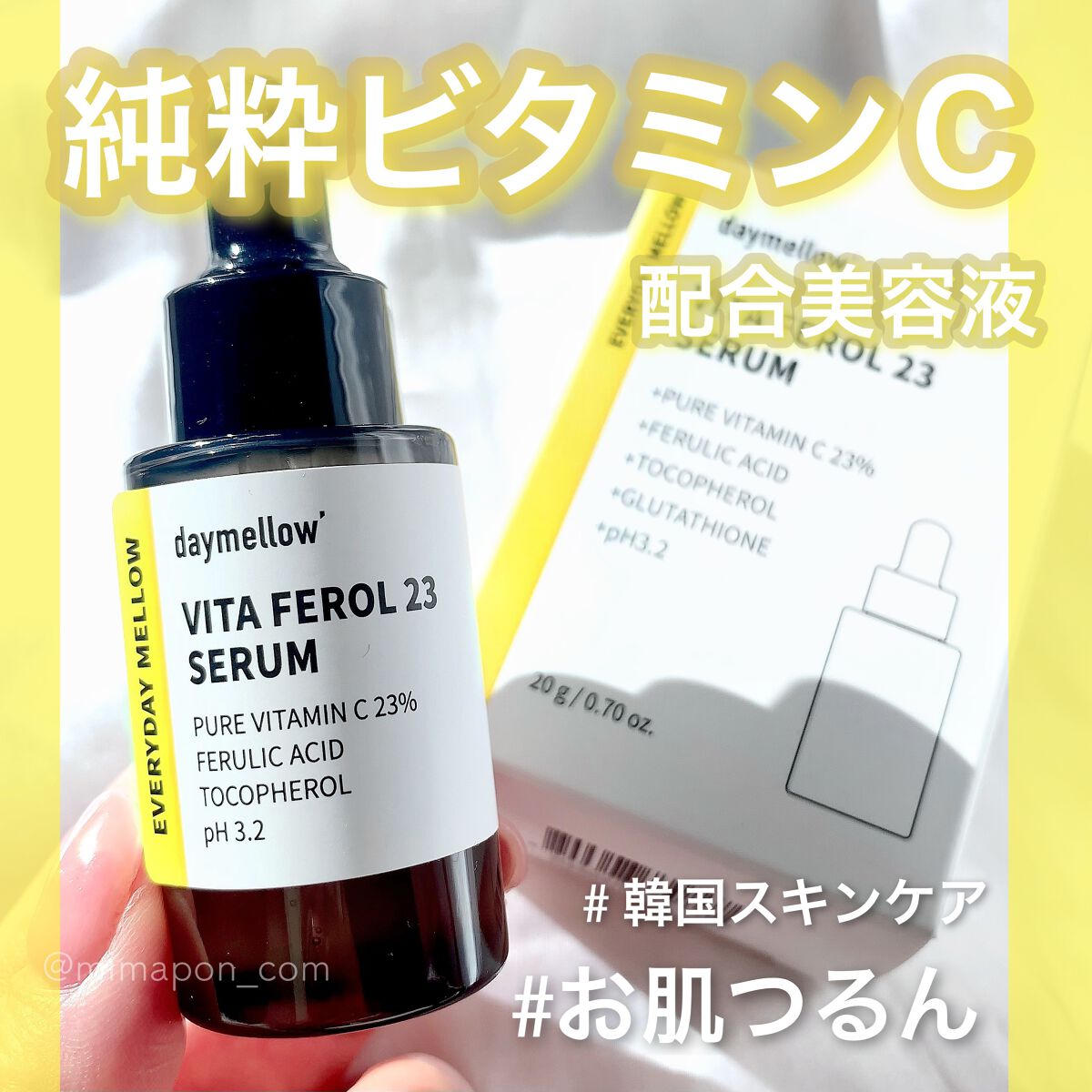 デイメロウビタフェロール23セラム@daymellow_official_jp様年とともに肌がどんより暗くてパッと照明を当てたような明るい肌になりたくってビタミン誘導体ではなく、純粋なビタミンCが23%とうい、高濃度の美容液をつかっているよ🍋...