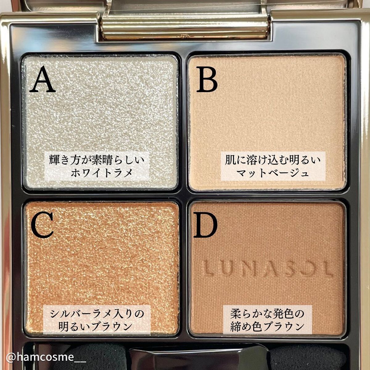 ルナソルを代表する大人気アイシャドウパレット ルナソル アイカラーレーションNの新色が2025春コスメとして登場🌸 ほのかな春の気配をまぶたに宿す、くすみのない淡いニュアンスカラーが勢揃い❣️ 光に包まれたベージュと透け感のあるブルーがどこまでも透明感を際立てる4色パレット✨ イエベさん大優勝の使いやすい王道オレンジブラウン! 左上のラメがこちらも華やかでハイライトとしても使えそう。