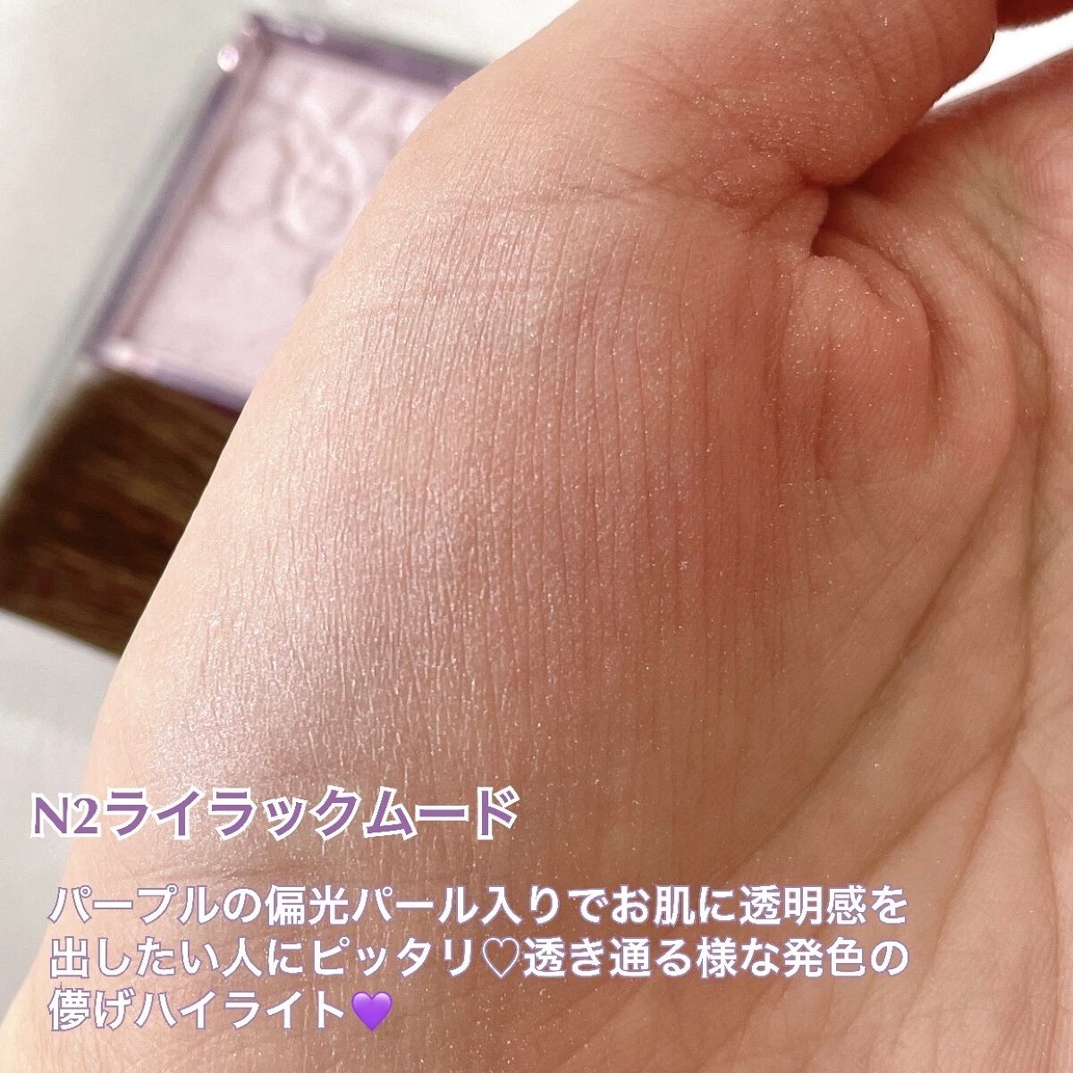 N1コーラルシャワーは、 チーク兼ハイライトとしても使えるし、 オレンジやブラウン系のチークに重ねても かわいい😍 N2ライラックムードは ピンク系のチークの上に重ねて ハイライトとして使うとかわいいっ🩷 一気に涼しい感じになる♡ セザンヌはハイライトをずっと使ってたけど、 とにかく優秀👏