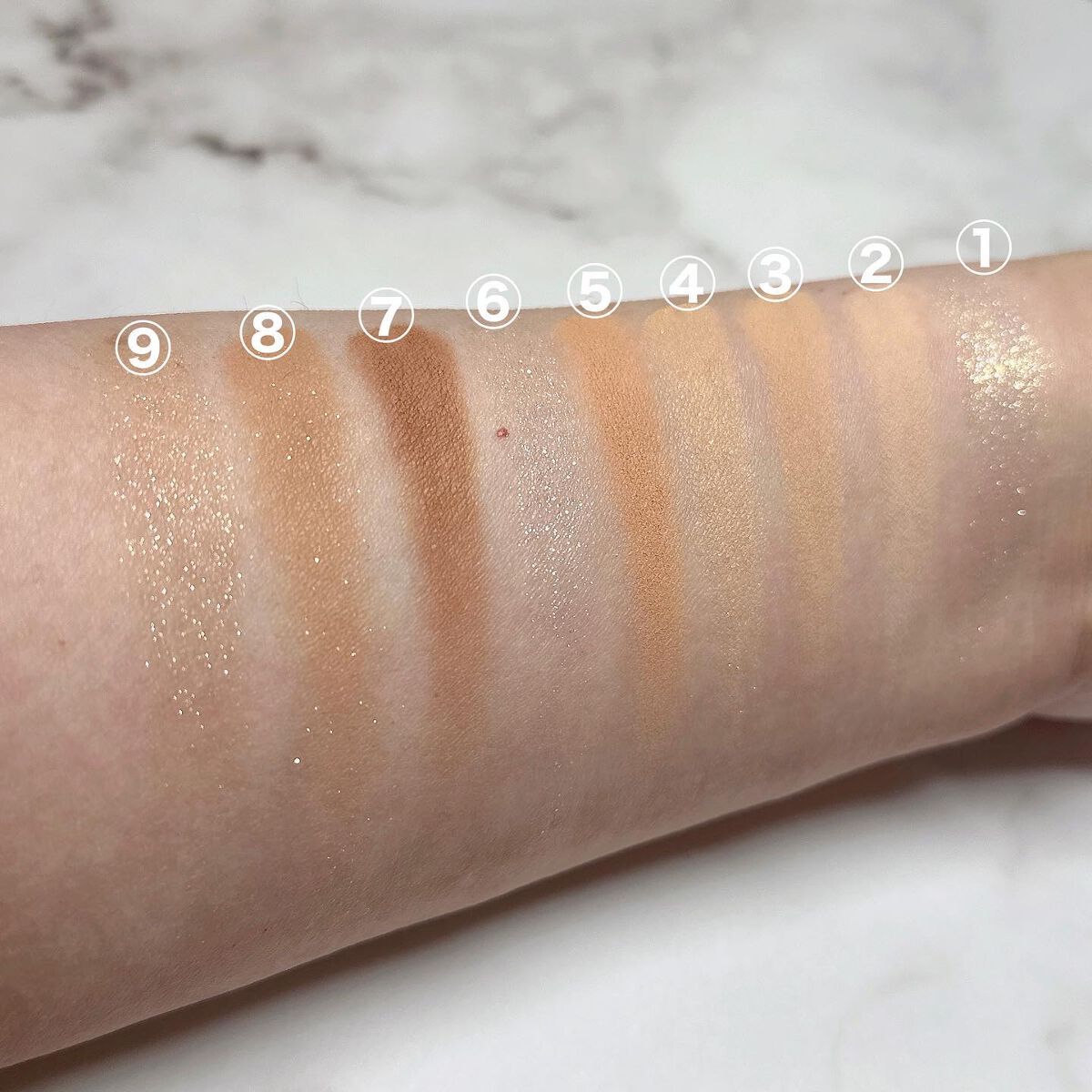 テクスチャーはサラサラだけど、飛び散るわけではなくて吸い付いてくる感じでした。 グリッターは、湿式のウェットさと押すとムニっとして、ちょっとゼリーテイストな気がします。ギラギラすぎなくて使いやすかったです。 ⑥はピンクも混ざっていてとても可愛い。アイスクリーム屋さんのストロベリーチーズケーキみたいな🍓これも、白すぎなくて肌馴染みの良い白系なので使いやすかったです。