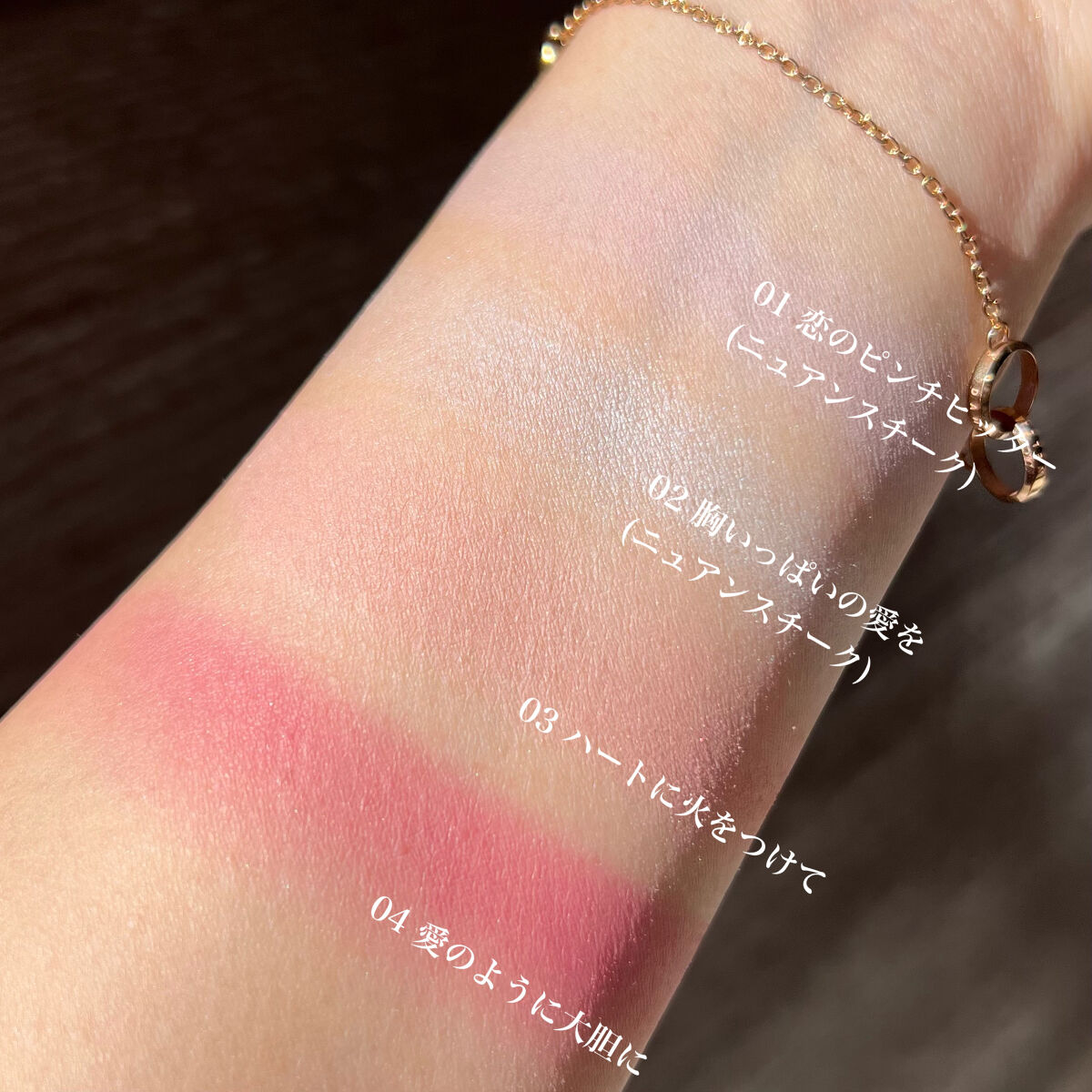 セザンヌの新作チーク『ブレンドカラーチーク』02番ムードピンクを使ってみたよ!青みが入ったピンクカラー🌸で、情報聞いた瞬間「絶対透明感出るやつじゃん…!」って思った笑 このチークね、なんと1つのパレットにマットカラー3色+パール入りカラー1色の計4色が入ってるの!すごくない?✨ 粉質もしっとりしててパウダーなのに粉っぽさゼロ!お肌にスッと溶け込むようになじんでくれて、付けたてのふんわり感が長続きする感じ🥰