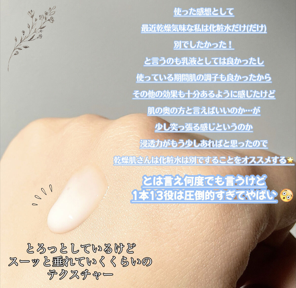 | ベタつかず、肌がしっとりと潤い感があって乾燥しにくくなった♪ | 詳細を見る | ||