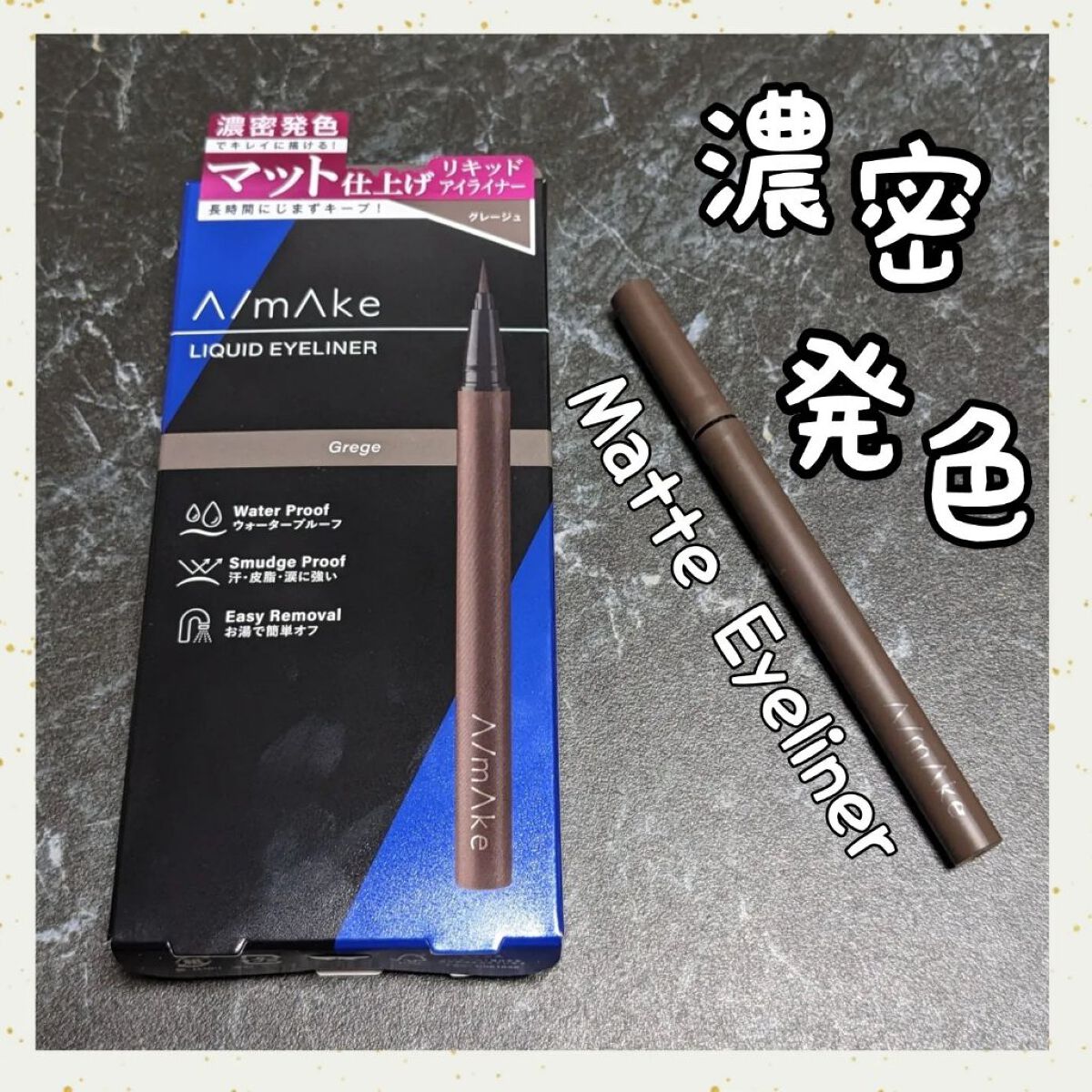 A/mAkeエーメイクマットリキッドアイライナーグレージュ¥1,430【マットなアイライナーいいよ!】出目だからリキッドアイライナーのツヤが目が強調されすぎて苦手これはマットだから目元が締まるので愛用ダークブラウンも使ったけど赤みが強めだった...