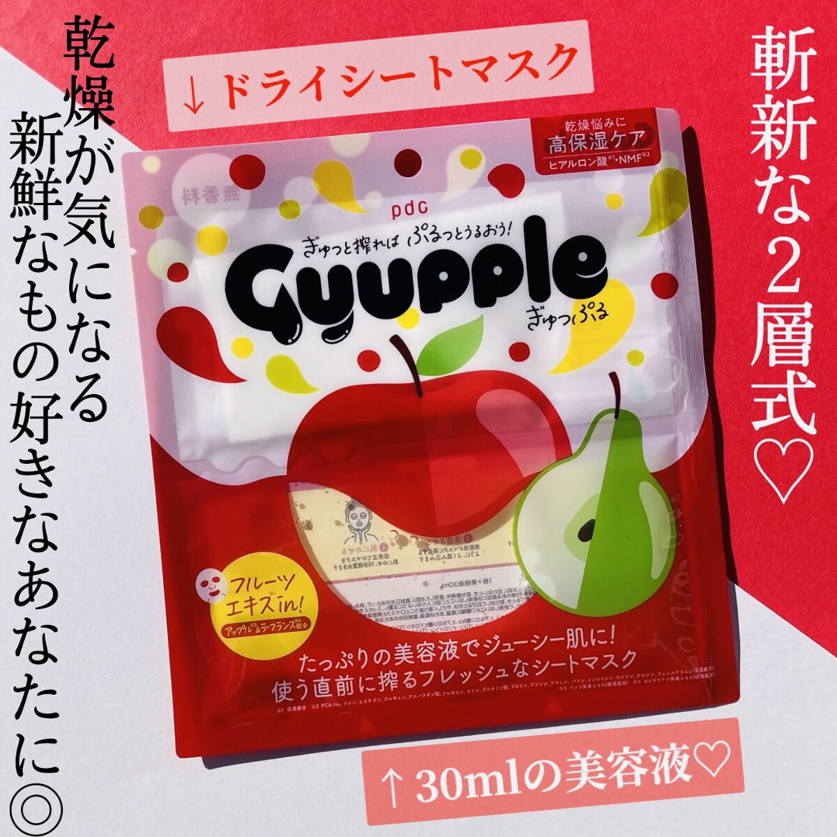 🍎pdcぎゅっぷるエッセンスマスク🍎\ぎゅっと搾れば、ぷるっとうるおう!/1枚30mL/396円(税込価格)美容液1本分の贅沢マスク‼️美容液とドライシートマスクが分離されてて使う直前に搾るフレッシュなパック🥺三つ折にして下の美容液部分を...