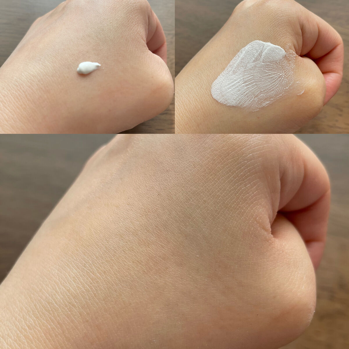 - <30g> ジメチコン、酸化亜鉛、水、メトキシケイヒ酸エチルヘキシル、グリセリン、エタノール、シクロペンタシロキサン、ジメチコンクロスポリマー、ラウリルPEG-9ポリジメチルシロキシエチルジメチコン、BG、ツボクサ葉エキス、ノイバラ果実エキス、乳酸桿菌/ダイコン根発酵液、豆乳発酵液、アーチチョーク葉エキス、オリゴペプチド-24、ミツロウ、トコフェロール、トリエトキシカプリリルシラン、塩化Na、フェノキシエタノール、(+/-)酸化チタン、水酸化Al