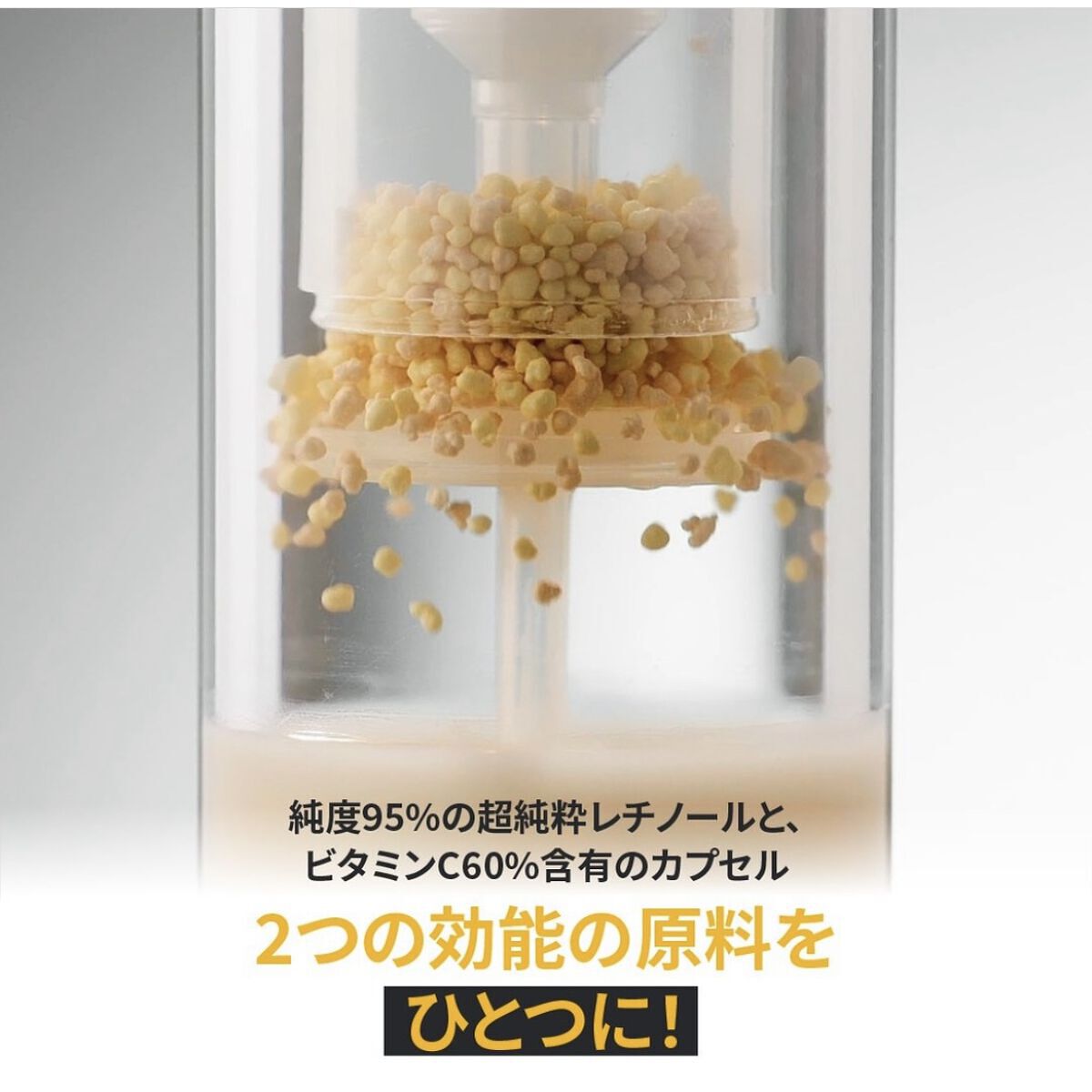 シルバーのボトルは、とってもオシャレ カプセルパートとセラムパートで分かれているのでふたを開け、カチッと音がするまでポンプを押し、最初に使用するときは、カプセルが溶けてセラムとよく混ざるように30秒以上、上下に振り、5分ほど立てておき、お肌になじませます。 ビタミンC+レチノールを実現したセラムはビタミンCカプセルとピュアレチノールの革新的な組み合わせで、毛穴や弾力などの肌の状態をケアし、健康的で美しい肌へと導くことができます。 やっぱり、別々に使ってたビタミンCとレチノールが一緒に使えるのはうれしい!